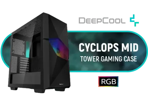 Deepcool Cyclops Mid- Tower Computer Case/Gaming Cabinet - Black | Support Mini-ITX/Micro-ATX/ATX/E-ATX | Pre-Installed 1 x 120 mm Front Fan - CYCLOPS BK / CYCLOPS BK