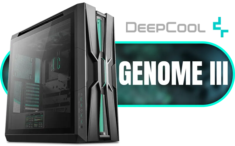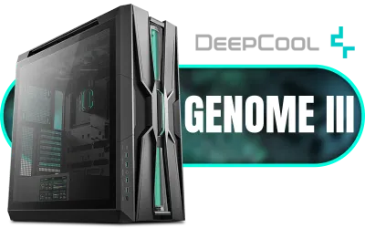 DeepCool GENOME III Full-Tower Liquid Cooling Case - Black / Integrated 420mm AIO / Visible Reservoir / 5.5-inch LCD Screen / Tempered Glass / Supports Mini-ITX, Micro-ATX, ATX, E-ATX / USB 3.0 / Audio / USB Type-C / GENOME-III