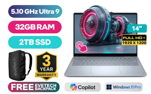 [TOUCHSCREEN] Dell 14 Plus 0425-2951 Intel Core Ultra 9-288V up to 5.10GHz Processor, 12MB Cache, 8x Cores, 8x Threads / 32GB LPDDR5X RAM / 2TB Ultra-Fast NVMe SSD / 14" FHD+ (1920 x 1200) Touchscreen Display / Integrated Intel Arc Graphics / <span style="font-size: 20px; color: #00BFFF; font-weight: bold;">Windows 11 Professional (64bit)</span> / Intel Wi-Fi 7 BE201 Wireless LAN / Bluetooth 5.4 / 1080p at 30 fps FHD Web Camera / 1x USB Type-A / 1x USB Type-C (DisplayPort and Power Delivery) / 1x USB Type-C Thunderbolt 4 (DisplayPort and Power Delivery) / 1x HDMI 2.1 / 1 x Headphone & Microphone Audio Combo Jack / Fingerprint Reader / Ice Blue Backlit keyboard / Dell 14 Plus DB04250 Intel Core Ultra 9 Touch Screen laptop Deal[TOUCHSCREEN] Dell 14 Plus 0425-2951 Intel Core Ultra 9-288V up to 5.10GHz Processor, 12MB Cache, 8x Cores, 8x Threads / 32GB LPDDR5X RAM / 2TB Ultra-Fast NVMe SSD / 14" FHD+ (1920 x 1200) Touchscreen Display / Integrated Intel Arc Graphics / Windows 11 Professional (64bit) / Intel Wi-Fi 7 BE201 Wireless LAN / Bluetooth 5.4 / 1080p at 30 fps FHD Web Camera / 1x USB Type-A / 1x USB Type-C (DisplayPort and Power Delivery) / 1x USB Type-C Thunderbolt 4 (DisplayPort and Power Delivery) / 1x HDMI 2.1 / 1 x Headphone & Microphone Audio Combo Jack / Fingerprint Reader / Ice Blue Backlit keyboard / Dell 14 Plus DB04250 Intel Core Ultra 9 Touch Screen laptop Deal [NBDEDB04250U932111PE/2TB] / [+] GET FREE EVETECH NEO Premium Gaming Backpack / 3 YEARS WARRANTY + FREE DELIVERY !