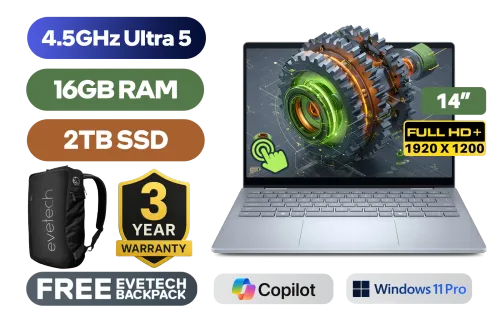 Dell 14 Plus 2-in-1 DB04250 Intel Core Ultra 5 226V up to 4.5GHz Processor, 8MB Cache, 8x Cores, 8x Threads / 16GB LPDDR5x RAM / 2TB Ultra-Fast NVMe SSD / 14" FHD+ (1920 x 1200) Touchscreen Anti-Glare Display / Integrated Intel Arc 130V Graphics / <span style="font-size: 20px; color: #00BFFF; font-weight: bold;">Windows 11 Pro</span> / Intel WiFi 7 BE201 Wireless LAN / Bluetooth 5.4 / 1080P FHD Camera /1x USB Type-A / 2x USB Type-C ( Supports Thunderbolt 4 / DisplayPort / Power Delivery) / 1x HDMI / 1x Microphone & Headphone Combo Jack / Finger Print Reader / White Backlit Keyboard / 2x Stereo speakers with Waves MaxxAudio® Pro / Dell 14 Plus 2-in-1 DB04250 Intel Core Ultra 5 Laptop DealDell 14 Plus 2-in-1 DB04250 Intel Core Ultra 5 226V up to 4.5GHz Processor, 8MB Cache, 8x Cores, 8x Threads / 16GB LPDDR5x RAM / 2TB Ultra-Fast NVMe SSD / 14" FHD+ (1920 x 1200) Touchscreen Anti-Glare Display / Integrated Intel Arc 130V Graphics / Windows 11 Pro / Intel WiFi 7 BE201 Wireless LAN / Bluetooth 5.4 / 1080P FHD Camera /1x USB Type-A / 2x USB Type-C ( Supports Thunderbolt 4 / DisplayPort / Power Delivery) / 1x HDMI / 1x Microphone & Headphone Combo Jack / Finger Print Reader / White Backlit Keyboard / 2x Stereo speakers with Waves MaxxAudio® Pro / Dell 14 Plus 2-in-1 DB04250 Intel Core Ultra 5 Laptop Deal [DB04250_LNL_202/2TB] / [+] GET FREE EVETECH NEO Premium Gaming Backpack / 3 YEARS WARRANTY + FREE DELIVERY !