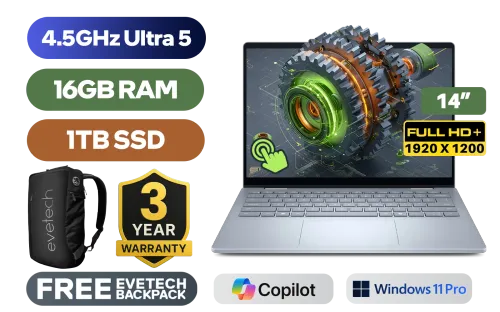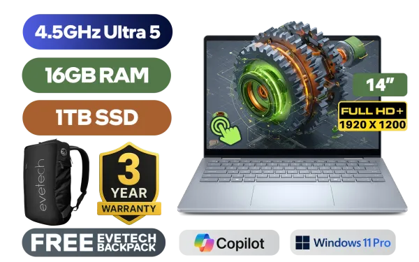 Dell 14 Plus 2-in-1 DB04250 Intel Core Ultra 5 226V up to 4.5GHz Processor, 8MB Cache, 8x Cores, 8x Threads / 16GB LPDDR5x RAM / 1TB Ultra-Fast NVMe SSD / 14" FHD+ (1920 x 1200) Touchscreen Anti-Glare Display / Integrated Intel Arc 130V Graphics / <span style="font-size: 20px; color: #00BFFF; font-weight: bold;">Windows 11 Pro</span> / Intel WiFi 7 BE201 Wireless LAN / Bluetooth 5.4 / 1080P FHD Camera /1x USB Type-A / 2x USB Type-C ( Supports Thunderbolt 4 / DisplayPort / Power Delivery) / 1x HDMI / 1x Microphone & Headphone Combo Jack / Finger Print Reader / White Backlit Keyboard / 2x Stereo speakers with Waves MaxxAudio® Pro / Dell 14 Plus 2-in-1 DB04250 Intel Core Ultra 5 Laptop DealDell 14 Plus 2-in-1 DB04250 Intel Core Ultra 5 226V up to 4.5GHz Processor, 8MB Cache, 8x Cores, 8x Threads / 16GB LPDDR5x RAM / 1TB Ultra-Fast NVMe SSD / 14" FHD+ (1920 x 1200) Touchscreen Anti-Glare Display / Integrated Intel Arc 130V Graphics / Windows 11 Pro / Intel WiFi 7 BE201 Wireless LAN / Bluetooth 5.4 / 1080P FHD Camera /1x USB Type-A / 2x USB Type-C ( Supports Thunderbolt 4 / DisplayPort / Power Delivery) / 1x HDMI / 1x Microphone & Headphone Combo Jack / Finger Print Reader / White Backlit Keyboard / 2x Stereo speakers with Waves MaxxAudio® Pro / Dell 14 Plus 2-in-1 DB04250 Intel Core Ultra 5 Laptop Deal [DB04250_LNL_202/1TB] / [+] GET FREE EVETECH NEO Premium Gaming Backpack / 3 YEARS WARRANTY + FREE DELIVERY !
