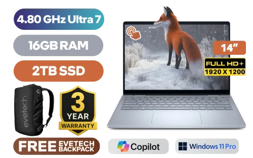 [TOUCHSCREEN] Dell 14 Plus 0425-2869 Intel Core Ultra 7-256V up to 4.80GHz Processor, 12MB Cache, 8x Cores, 8x Threads / 16GB LPDDR5X RAM / 2TB Ultra-Fast NVMe SSD / 14" FHD+ (1920 x 1200) Touchscreen Display / Integrated Intel Arc Graphics / <span style="font-size: 20px; color: #00BFFF; font-weight: bold;">Windows 11 Professional (64bit)</span> / Intel Wi-Fi 7 BE201 Wireless LAN / Bluetooth 5.4 / 1080p at 30 fps FHD Web Camera / 1x USB Type-A / 1x USB Type-C (DisplayPort and Power Delivery) / 1x USB Type-C Thunderbolt 4 (DisplayPort and Power Delivery) / 1x HDMI 2.1 / 1 x Headphone & Microphone Audio Combo Jack / Fingerprint Reader / Ice Blue Backlit keyboard / Dell 14 Plus DB04250 Intel Core Ultra 7 Touch Screen laptop Deal[TOUCHSCREEN] Dell 14 Plus 0425-2869 Intel Core Ultra 7-256V up to 4.80GHz Processor, 12MB Cache, 8x Cores, 8x Threads / 16GB LPDDR5X RAM / 2TB Ultra-Fast NVMe SSD / 14" FHD+ (1920 x 1200) Touchscreen Display / Integrated Intel Arc Graphics / Windows 11 Professional (64bit) / Intel Wi-Fi 7 BE201 Wireless LAN / Bluetooth 5.4 / 1080p at 30 fps FHD Web Camera / 1x USB Type-A / 1x USB Type-C (DisplayPort and Power Delivery) / 1x USB Type-C Thunderbolt 4 (DisplayPort and Power Delivery) / 1x HDMI 2.1 / 1 x Headphone & Microphone Audio Combo Jack / Fingerprint Reader / Ice Blue Backlit keyboard / Dell 14 Plus DB04250 Intel Core Ultra 7 Touch Screen laptop Deal [NBDEB04250U716111PE/2TB] / [+] GET FREE EVETECH NEO Premium Gaming Backpack / 3 YEARS WARRANTY + FREE DELIVERY !