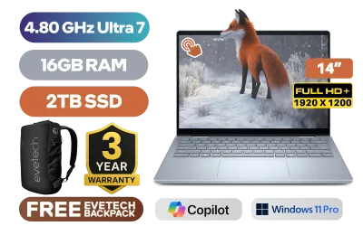 [TOUCHSCREEN] Dell 14 Plus 0425-2869 Intel Core Ultra 7-256V up to 4.80GHz Processor, 12MB Cache, 8x Cores, 8x Threads / 16GB LPDDR5X RAM / 2TB Ultra-Fast NVMe SSD / 14" FHD+ (1920 x 1200) Touchscreen Display / Integrated Intel Arc Graphics / <span style="font-size: 20px; color: #00BFFF; font-weight: bold;">Windows 11 Professional (64bit)</span> / Intel Wi-Fi 7 BE201 Wireless LAN / Bluetooth 5.4 / 1080p at 30 fps FHD Web Camera / 1x USB Type-A / 1x USB Type-C (DisplayPort and Power Delivery) / 1x USB Type-C Thunderbolt 4 (DisplayPort and Power Delivery) / 1x HDMI 2.1 / 1 x Headphone & Microphone Audio Combo Jack / Fingerprint Reader / Ice Blue Backlit keyboard / Dell 14 Plus DB04250 Intel Core Ultra 7 Touch Screen laptop Deal[TOUCHSCREEN] Dell 14 Plus 0425-2869 Intel Core Ultra 7-256V up to 4.80GHz Processor, 12MB Cache, 8x Cores, 8x Threads / 16GB LPDDR5X RAM / 2TB Ultra-Fast NVMe SSD / 14" FHD+ (1920 x 1200) Touchscreen Display / Integrated Intel Arc Graphics / Windows 11 Professional (64bit) / Intel Wi-Fi 7 BE201 Wireless LAN / Bluetooth 5.4 / 1080p at 30 fps FHD Web Camera / 1x USB Type-A / 1x USB Type-C (DisplayPort and Power Delivery) / 1x USB Type-C Thunderbolt 4 (DisplayPort and Power Delivery) / 1x HDMI 2.1 / 1 x Headphone & Microphone Audio Combo Jack / Fingerprint Reader / Ice Blue Backlit keyboard / Dell 14 Plus DB04250 Intel Core Ultra 7 Touch Screen laptop Deal [NBDEB04250U716111PE/2TB] / [+] GET FREE EVETECH NEO Premium Gaming Backpack / 3 YEARS WARRANTY + FREE DELIVERY !