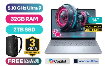 [TOUCHSCREEN] Dell 14 Plus 0425-2951 Intel Core Ultra 9-288V up to 5.10GHz Processor, 12MB Cache, 8x Cores, 8x Threads / 32GB LPDDR5X RAM / 2TB Ultra-Fast NVMe SSD / 14" FHD+ (1920 x 1200) Touchscreen Display / Integrated Intel Arc Graphics / <span style="font-size: 20px; color: #00BFFF; font-weight: bold;">Windows 11 Professional (64bit)</span> / Intel Wi-Fi 7 BE201 Wireless LAN / Bluetooth 5.4 / 1080p at 30 fps FHD Web Camera / 1x USB Type-A / 1x USB Type-C (DisplayPort and Power Delivery) / 1x USB Type-C Thunderbolt 4 (DisplayPort and Power Delivery) / 1x HDMI 2.1 / 1 x Headphone & Microphone Audio Combo Jack / Fingerprint Reader / Ice Blue Backlit keyboard / Dell 14 Plus DB04250 Intel Core Ultra 9 Touch Screen laptop Deal[TOUCHSCREEN] Dell 14 Plus 0425-2951 Intel Core Ultra 9-288V up to 5.10GHz Processor, 12MB Cache, 8x Cores, 8x Threads / 32GB LPDDR5X RAM / 2TB Ultra-Fast NVMe SSD / 14" FHD+ (1920 x 1200) Touchscreen Display / Integrated Intel Arc Graphics / Windows 11 Professional (64bit) / Intel Wi-Fi 7 BE201 Wireless LAN / Bluetooth 5.4 / 1080p at 30 fps FHD Web Camera / 1x USB Type-A / 1x USB Type-C (DisplayPort and Power Delivery) / 1x USB Type-C Thunderbolt 4 (DisplayPort and Power Delivery) / 1x HDMI 2.1 / 1 x Headphone & Microphone Audio Combo Jack / Fingerprint Reader / Ice Blue Backlit keyboard / Dell 14 Plus DB04250 Intel Core Ultra 9 Touch Screen laptop Deal [NBDEDB04250U932111PE/2TB] / [+] GET FREE EVETECH NEO Premium Gaming Backpack / 3 YEARS WARRANTY + FREE DELIVERY !