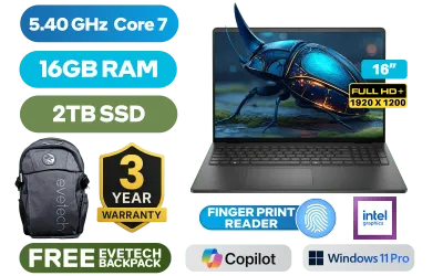 Dell 16 DC16250 1625-2852 Intel® Core™ 7-150U up to 5.40GHz Processor, 12MB Cache, 10x Cores, 12x Threads / 16GB DDR5 RAM / 2TB Ultra-Fast NVME SSD / 16" FHD+ (1920x1200) Anti-glare Display / Integrated Intel Graphics / <span style="font-size: 20px; color: #00BFFF; font-weight: bold;">Windows 11 Professional (64bit)</span> / Realtek RTL8852BE Wi-Fi 6 Wireless LAN / Bluetooth 5.2 / HD Web Camera / Fingerprint Reader / 2x USB Type-A / 1x USB Type-C (10Gbps) with Display Port 1.4 and Power Delivery / 1x HDMI 1.4 / 1x Audio and Headphone Combo Jack / Full Size White Backlit Keyboard / Dell 16 DC16250 Core 7 Laptop DealDell 16 DC16250 1625-2852 Intel® Core™ 7-150U up to 5.40GHz Processor, 12MB Cache, 10x Cores, 12x Threads / 16GB DDR5 RAM / 2TB Ultra-Fast NVME SSD / 16" FHD+ (1920x1200) Anti-glare Display / Integrated Intel Graphics / Windows 11 Professional (64bit) / Realtek RTL8852BE Wi-Fi 6 Wireless LAN / Bluetooth 5.2 / HD Web Camera / Fingerprint Reader / 2x USB Type-A / 1x USB Type-C (10Gbps) with Display Port 1.4 and Power Delivery / 1x HDMI 1.4 / 1x Audio and Headphone Combo Jack / Full Size White Backlit Keyboard / Dell 16 DC16250 Core 7 Laptop Deal [NBDEDC16250C716111PE/2TB] / 3 YEARS WARRANTY / [+] GET FREE EVETECH FLUX Premium Gaming Backpack+ FREE DELIVERY !