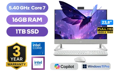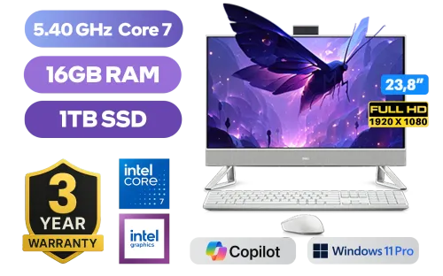Dell 24 All-in-One EC24250 2425-6609 Intel® Core™ 7-150U up to 5.40GHz Processor, 12MB Cache, 10x Cores, 12x Threads / 16GB DDR5 RAM / 1TB Ultra-Fast NVMe SSD / 23.8" FHD (1920 x 1080) Anti-Glare Display / Integrated Intel Graphics / <span style="font-size: 20px; color: #00BFFF; font-weight: bold;">Windows 11 Professional (64bit)</span> / Intel® Wi-Fi 6E AX211 Wireless LAN / Bluetooth 5.3 / 5MP IR Web Camera / 4x USB Type-A / 1x USB Type-C / 2x HDMI / 1x RJ-45 / SD Card Reader/ 1 x Headphone & Microphone Audio Combo Jack / Free Dell KM5221W Wireless Keyboard & Mouse / Dell EC24250 Intel® Core™ 7 All-in-One PCDell 24 All-in-One EC24250 2425-6609 Intel® Core™ 7-150U up to 5.40GHz Processor, 12MB Cache, 10x Cores, 12x Threads / 16GB DDR5 RAM / 1TB Ultra-Fast NVMe SSD / 23.8" FHD (1920 x 1080) Anti-Glare Display / Integrated Intel Graphics / Windows 11 Professional (64bit) / Intel® Wi-Fi 6E AX211 Wireless LAN / Bluetooth 5.3 / 5MP IR Web Camera / 4x USB Type-A / 1x USB Type-C / 2x HDMI / 1x RJ-45 / SD Card Reader/ 1 x Headphone & Microphone Audio Combo Jack / Free Dell KM5221W Wireless Keyboard & Mouse / Dell EC24250 Intel® Core™ 7 All-in-One PC [DTDEEC242507161W11PE] + FREE DELIVERY !