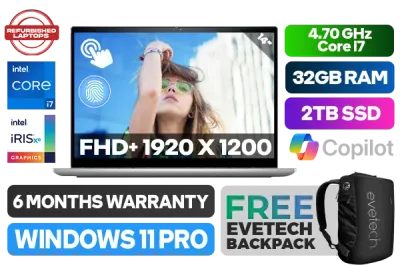 [Open Box Refurbished Laptop] [TOUCHSCREEN] Dell Inspiron 14 7420 12th Gen Intel Alder Lake Core i7-1255U up to 4.70GHz Processor, 12MB Cache, 10x Cores, 12x Threads / 32GB DDR4 RAM / 2TB Ultra-Fast NVMe SSD / 14" FHD+ (1920 x 1200) WVA Touchscreen Display / Integrated Intel Iris Xe Graphics, DirectX 12 Support / <span style="font-size: 20px; color: #00BFFF; font-weight: bold;">Windows 11 Professional (64bit)</span> / Dual Band WiFi 6E AX211 Wireless LAN / Bluetooth 5.2 / FHD Web Camera with Dual Array Digital Microphone / 1x USB Type-A / 2x USB Type-C with PowerDelivery / 1x HDMI 1.4b / 1 x Headphone & Microphone Audio Combo Jack / 1x SD Card Reader / Fingerprint Reader / White Backlit keyboard / Ultralight 1.63kg / 6 Months Warranty / Dell Inspiron 14 7420 12th Gen Core i7 Touch Screen laptop Deal[Open Box Refurbished Laptop] [TOUCHSCREEN] Dell Inspiron 14 7420 12th Gen Intel Alder Lake Core i7-1255U up to 4.70GHz Processor, 12MB Cache, 10x Cores, 12x Threads / 32GB DDR4 RAM / 2TB Ultra-Fast NVMe SSD / 14" FHD+ (1920 x 1200) WVA Touchscreen Display / Integrated Intel Iris Xe Graphics, DirectX 12 Support / Windows 11 Professional (64bit) / Dual Band WiFi 6E AX211 Wireless LAN / Bluetooth 5.2 / FHD Web Camera with Dual Array Digital Microphone / 1x USB Type-A / 2x USB Type-C with PowerDelivery / 1x HDMI 1.4b / 1 x Headphone & Microphone Audio Combo Jack / 1x SD Card Reader / Fingerprint Reader / White Backlit keyboard / Ultralight 1.63kg / 6 Months Warranty / Dell Inspiron 14 7420 12th Gen Core i7 Touch Screen laptop Deal [OEM-NBDEI74202I71651211P/32GB/2TB] / [+] GET FREE EVETECH NEO Premium Gaming Backpack+ FREE DELIVERY !