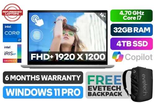 [Open Box Refurbished Laptop] [TOUCHSCREEN] Dell Inspiron 14 7420 12th Gen Intel Alder Lake Core i7-1255U up to 4.70GHz Processor, 12MB Cache, 10x Cores, 12x Threads / 32GB DDR4 RAM / 4TB Ultra-Fast NVMe SSD / 14" FHD+ (1920 x 1200) WVA Touchscreen Display / Integrated Intel Iris Xe Graphics, DirectX 12 Support / <span style="font-size: 20px; color: #00BFFF; font-weight: bold;">Windows 11 Professional (64bit)</span> / Dual Band WiFi 6E AX211 Wireless LAN / Bluetooth 5.2 / FHD Web Camera with Dual Array Digital Microphone / 1x USB Type-A / 2x USB Type-C with PowerDelivery / 1x HDMI 1.4b / 1 x Headphone & Microphone Audio Combo Jack / 1x SD Card Reader / Fingerprint Reader / White Backlit keyboard / Ultralight 1.63kg / 6 Months Warranty / Dell Inspiron 14 7420 12th Gen Core i7 Touch Screen laptop Deal[Open Box Refurbished Laptop] [TOUCHSCREEN] Dell Inspiron 14 7420 12th Gen Intel Alder Lake Core i7-1255U up to 4.70GHz Processor, 12MB Cache, 10x Cores, 12x Threads / 32GB DDR4 RAM / 4TB Ultra-Fast NVMe SSD / 14" FHD+ (1920 x 1200) WVA Touchscreen Display / Integrated Intel Iris Xe Graphics, DirectX 12 Support / Windows 11 Professional (64bit) / Dual Band WiFi 6E AX211 Wireless LAN / Bluetooth 5.2 / FHD Web Camera with Dual Array Digital Microphone / 1x USB Type-A / 2x USB Type-C with PowerDelivery / 1x HDMI 1.4b / 1 x Headphone & Microphone Audio Combo Jack / 1x SD Card Reader / Fingerprint Reader / White Backlit keyboard / Ultralight 1.63kg / 6 Months Warranty / Dell Inspiron 14 7420 12th Gen Core i7 Touch Screen laptop Deal [OEM-NBDEI74202I71651211P/32GB/4TB] / [+] GET FREE EVETECH NEO Premium Gaming Backpack+ FREE DELIVERY !