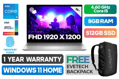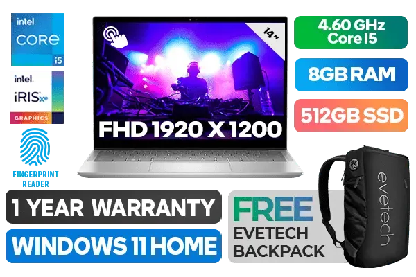 [TOUCHSCREEN] Dell Inspiron 14 7430 13th Gen Intel Core i5-1335U up to 4.60GHz Processor, 12MB Cache, 10x Cores, 12x Threads / 8GB LPDDR5 RAM / 512GB Ultra-Fast NVMe SSD / 14" FHD+ (1920 x 1200) WVA Touchscreen Display / Integrated Intel Iris Xe Graphics, DirectX 12 Support / Windows 11 Home (64bit) / Dual Band WiFi 6E AX211 Wireless LAN / Bluetooth 5.2 / FHD Web Camera with Dual Array Digital Microphone / 1x USB Type-A / 2x USB Type-C / 1x HDMI 1.4 / 1 x Headphone & Microphone Audio Combo Jack / 1x SD Card Reader / Fingerprint Reader / White Backlit keyboard / FREE Dell Active Stylus Pen / 1 YEAR WARRANTY / Dell Inspiron 14 7430 13th Gen Core i7 Touch Screen laptop Deal[TOUCHSCREEN] Dell Inspiron 14 7430 13th Gen Intel Core i5-1335U up to 4.60GHz Processor, 12MB Cache, 10x Cores, 12x Threads / 8GB LPDDR5 RAM / 512GB Ultra-Fast NVMe SSD / 14" FHD+ (1920 x 1200) WVA Touchscreen Display / Integrated Intel Iris Xe Graphics, DirectX 12 Support / Windows 11 Home (64bit) / Dual Band WiFi 6E AX211 Wireless LAN / Bluetooth 5.2 / FHD Web Camera with Dual Array Digital Microphone / 1x USB Type-A / 2x USB Type-C / 1x HDMI 1.4 / 1 x Headphone & Microphone Audio Combo Jack / 1x SD Card Reader / Fingerprint Reader / White Backlit keyboard / FREE Dell Active Stylus Pen / 1 YEAR WARRANTY / Dell Inspiron 14 7430 13th Gen Core i7 Touch Screen laptop Deal [74-QUAKEN142N1RPL2HFT] / [+] GET FREE EVETECH NEO Premium Gaming Backpack+ FREE DELIVERY !