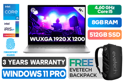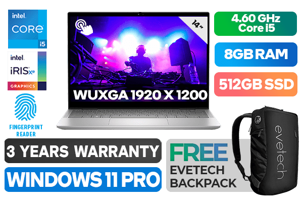 [TOUCHSCREEN] Dell Inspiron 14 7430 13th Gen Intel Core i5-1335U up to 4.60GHz Processor, 12MB Cache, 10x Cores, 12x Threads / 8GB LPDDR5 RAM / 512GB Ultra-Fast NVMe SSD / 14" WUXGA 1920 x 1200 Display With Touch Screen / Integrated Intel Iris Xe Graphics, DirectX 12 Support / <span style="font-size: 20px; color: #00BFFF; font-weight: bold;">Windows 11 Professional (64bit)</span> / Dual Band WiFi 6E AX211 Wireless LAN / Bluetooth 5.2 / FHD Web Camera with Dual Array Digital Microphone / 1x USB Type-A / 2x USB Type-C / 1x HDMI 1.4 / 1 x Headphone & Microphone Audio Combo Jack / 1x SD Card Reader / Fingerprint Reader / White Backlit keyboard / FREE Dell Active Stylus Pen / Dell Inspiron 14 7430 13th Gen Core i5 Touch Screen laptop Deal[TOUCHSCREEN] Dell Inspiron 14 7430 13th Gen Intel Core i5-1335U up to 4.60GHz Processor, 12MB Cache, 10x Cores, 12x Threads / 8GB LPDDR5 RAM / 512GB Ultra-Fast NVMe SSD / 14" WUXGA 1920 x 1200 Display With Touch Screen / Integrated Intel Iris Xe Graphics, DirectX 12 Support / Windows 11 Professional (64bit) / Dual Band WiFi 6E AX211 Wireless LAN / Bluetooth 5.2 / FHD Web Camera with Dual Array Digital Microphone / 1x USB Type-A / 2x USB Type-C / 1x HDMI 1.4 / 1 x Headphone & Microphone Audio Combo Jack / 1x SD Card Reader / Fingerprint Reader / White Backlit keyboard / FREE Dell Active Stylus Pen / Dell Inspiron 14 7430 13th Gen Core i5 Touch Screen laptop Deal [74-QUAKEN142N1RPL2PFT] / 3 YEARS WARRANTY / [+] GET FREE EVETECH NEO Premium Gaming Backpack+ FREE DELIVERY !