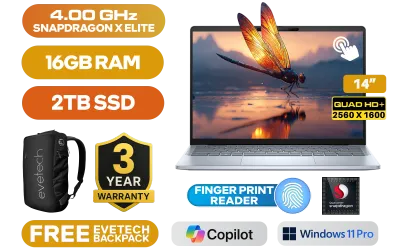 [TOUCHSCREEN] Dell Inspiron 14 Plus 7441 Qualcomm® Snapdragon X Elite, X1E-80-100 up to 4.00GHz Processor, 42MB Cache, 12x Cores / 16GB DDR5 RAM / 2TB Ultra-Fast NVMe SSD / 14" QHD+ (2560 x 1600) Touchscreen Display / Integrated Qualcomm Adreno Graphics / <span style="font-size: 20px; color: #00BFFF; font-weight: bold;">Windows 11 Professional (64bit)</span> / Qualcomm FastConnect 7800 Wi-Fi 7 / Bluetooth 5.4 / FHD Web Camera with Dual Array Digital Microphone / 1 x USB Type-A / 2 x USB Type-C (Display Port / Power Delivery) / 1 x Headphone & Microphone Audio Combo Jack / 1x MicroSD Card Reader / Fingerprint Reader / White Backlit keyboard / Dell Inspiron 14 Plus 7441 Snapdragon X Elite Touch Screen Laptop Deal[TOUCHSCREEN] Dell Inspiron 14 Plus 7441 Qualcomm® Snapdragon X Elite, X1E-80-100 up to 4.00GHz Processor, 42MB Cache, 12x Cores / 16GB DDR5 RAM / 2TB Ultra-Fast NVMe SSD / 14" QHD+ (2560 x 1600) Touchscreen Display / Integrated Qualcomm Adreno Graphics / Windows 11 Professional (64bit) / Qualcomm FastConnect 7800 Wi-Fi 7 / Bluetooth 5.4 / FHD Web Camera with Dual Array Digital Microphone / 1 x USB Type-A / 2 x USB Type-C (Display Port / Power Delivery) / 1 x Headphone & Microphone Audio Combo Jack / 1x MicroSD Card Reader / Fingerprint Reader / White Backlit keyboard / Dell Inspiron 14 Plus 7441 Snapdragon X Elite Touch Screen Laptop Deal [NBDEI7441XE161W11PE/2TB] / 3 YEARS WARRANTY / [+] GET FREE EVETECH NEO Premium Gaming Backpack+ FREE DELIVERY !