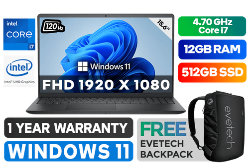 Dell Inspiron 15 3520 12th Gen Intel Alder Lake Core i7-1255U up to 4.70GHz Processor, 12MB Cache, 10x Cores, 12x Threads / 12GB DDR4 RAM / 512GB Ultra-Fast NVMe SSD / 15.6" Full HD 1920 X 1080 Anti-glare 120Hz Narrow Border WVA Display / Integrated Intel UHD Graphics / Windows 11 Home (64bit) / Intel AX201 Wireless LAN / Bluetooth 5.0 / SD Card Reader / HD Web Camera with Digital Microphone / 3x USB Type-A / 1x HDMI / 1x Headphone & Microphone Audio Combo Jack / Non-Backlit keyboard / 1 Year Warranty / Dell Inspiron 15 3520 Core i7 Laptop DealDell Inspiron 15 3520 12th Gen Intel Alder Lake Core i7-1255U up to 4.70GHz Processor, 12MB Cache, 10x Cores, 12x Threads / 12GB DDR4 RAM / 512GB Ultra-Fast NVMe SSD / 15.6" Full HD 1920 X 1080 Anti-glare 120Hz Narrow Border WVA Display / Integrated Intel UHD Graphics / Windows 11 Home (64bit) / Intel AX201 Wireless LAN / Bluetooth 5.0 / SD Card Reader / HD Web Camera with Digital Microphone / 3x USB Type-A / 1x HDMI / 1x Headphone & Microphone Audio Combo Jack / Non-Backlit keyboard / 1 Year Warranty / Dell Inspiron 15 3520 Core i7 Laptop Deal [NBDEI3520I78512W11H1/12GB] / [+] GET FREE EVETECH NEO Premium Gaming Backpack+ FREE DELIVERY !