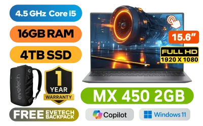 [TOUCHSCREEN] Dell Inspiron 15 5518 11th Gen Intel Tiger Lake Core i5-11320H up to 4.5GHz Processor, 8MB Cache, 4x Cores, 8x Threads / 16GB DDR4 RAM / 4TB Ultra-Fast NVMe SSD / 15.6" FHD 1920 x 1080 Anti-Glare Display With Touch Screen / NVIDIA Geforce MX450 2GB GDDR5 DirectX 12 Dedicated Graphics Card / Windows 11 Home (64bit) / No DVD Writer Included / WiFi 6 AX201 Wireless LAN / Bluetooth / HD Web Camera / 2x USB 3.2 Gen 1 Type-A / 1x USB 3.2 Type-C™ with DisplayPort™ and Power Delivery / 1x HDMI / 1x Audio In And Out Jack Combo / SD Card Reader / Fingerprint Reader / Single White Color Backlit Keyboard / 1 YEAR WARRANTY / Dell Inspiron 15 5518 11th Gen i5 Touchscreen Laptop Deal[TOUCHSCREEN] Dell Inspiron 15 5518 11th Gen Intel Tiger Lake Core i5-11320H up to 4.5GHz Processor, 8MB Cache, 4x Cores, 8x Threads / 16GB DDR4 RAM / 4TB Ultra-Fast NVMe SSD / 15.6" FHD 1920 x 1080 Anti-Glare Display With Touch Screen / NVIDIA Geforce MX450 2GB GDDR5 DirectX 12 Dedicated Graphics Card / Windows 11 Home (64bit) / No DVD Writer Included / WiFi 6 AX201 Wireless LAN / Bluetooth / HD Web Camera / 2x USB 3.2 Gen 1 Type-A / 1x USB 3.2 Type-C™ with DisplayPort™ and Power Delivery / 1x HDMI / 1x Audio In And Out Jack Combo / SD Card Reader / Fingerprint Reader / Single White Color Backlit Keyboard / 1 YEAR WARRANTY / Dell Inspiron 15 5518 11th Gen i5 Touchscreen Laptop Deal [CYBORGN515TGL2201_4101_GS/16GB/4TB] / [+] GET FREE EVETECH NEO Premium Gaming Backpack+ FREE DELIVERY !
