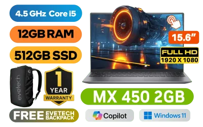 [TOUCHSCREEN] Dell Inspiron 15 5518 11th Gen Intel Tiger Lake Core i5-11320H up to 4.5GHz Processor, 8MB Cache, 4x Cores, 8x Threads / 12GB DDR4 RAM / 512GB Ultra-Fast NVMe SSD / 15.6" FHD 1920 x 1080 Anti-Glare Display With Touch Screen / NVIDIA Geforce MX450 2GB GDDR5 DirectX 12 Dedicated Graphics Card / Windows 11 Home (64bit) / No DVD Writer Included / WiFi 6 AX201 Wireless LAN / Bluetooth / HD Web Camera / 2x USB 3.2 Gen 1 Type-A / 1x USB 3.2 Type-C™ with DisplayPort™ and Power Delivery / 1x HDMI / 1x Audio In And Out Jack Combo / SD Card Reader / Fingerprint Reader / Single White Color Backlit Keyboard / 1 YEAR WARRANTY / Dell Inspiron 15 5518 11th Gen i5 Touchscreen Laptop Deal[TOUCHSCREEN] Dell Inspiron 15 5518 11th Gen Intel Tiger Lake Core i5-11320H up to 4.5GHz Processor, 8MB Cache, 4x Cores, 8x Threads / 12GB DDR4 RAM / 512GB Ultra-Fast NVMe SSD / 15.6" FHD 1920 x 1080 Anti-Glare Display With Touch Screen / NVIDIA Geforce MX450 2GB GDDR5 DirectX 12 Dedicated Graphics Card / Windows 11 Home (64bit) / No DVD Writer Included / WiFi 6 AX201 Wireless LAN / Bluetooth / HD Web Camera / 2x USB 3.2 Gen 1 Type-A / 1x USB 3.2 Type-C™ with DisplayPort™ and Power Delivery / 1x HDMI / 1x Audio In And Out Jack Combo / SD Card Reader / Fingerprint Reader / Single White Color Backlit Keyboard / 1 YEAR WARRANTY / Dell Inspiron 15 5518 11th Gen i5 Touchscreen Laptop Deal [CYBORGN515TGL2201_4101_GS] / [+] GET FREE EVETECH NEO Premium Gaming Backpack+ FREE DELIVERY !