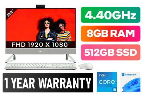 Dell Inspiron 5410-9217 12th Gen Intel Core i5-1235U up to 4.40GHz Processor, 12MB Cache, 10x Cores, 12x Threads / 8GB DDR4 RAM / 512GB Ultra-Fast NVMe SSD + 1TB Hard Drive / 23.8" FHD (1920 x 1080) Anti-Glare Narrow Border AIT Infinity Display / Integrated Intel® UHD Graphics, DirectX 12 Support / Windows 11 Home (64bit) / Dual Band WiFi 6E Wireless LAN / Bluetooth 5.2 / FHD Web Camera with Dual Array Digital Microphone / 4x USB Type-A / 1x USB Type-C / 2x HDMI 1.4b / 1 x Headphone & Microphone Audio Combo Jack / 1x SD Card Reader / 1 YEAR WARRANTY / Dell Wireless mouse included with Keyboard / Dell Inspiron 24 5410-9217 12th Gen Core i5 All-in-One PCDell Inspiron 5410-9217 12th Gen Intel Core i5-1235U up to 4.40GHz Processor, 12MB Cache, 10x Cores, 12x Threads / 8GB DDR4 RAM / 512GB Ultra-Fast NVMe SSD + 1TB Hard Drive / 23.8" FHD (1920 x 1080) Anti-Glare Narrow Border AIT Infinity Display / Integrated Intel® UHD Graphics, DirectX 12 Support / Windows 11 Home (64bit) / Dual Band WiFi 6E Wireless LAN / Bluetooth 5.2 / FHD Web Camera with Dual Array Digital Microphone / 4x USB Type-A / 1x USB Type-C / 2x HDMI 1.4b / 1 x Headphone & Microphone Audio Combo Jack / 1x SD Card Reader / 1 YEAR WARRANTY / Dell Wireless mouse included with Keyboard / Dell Inspiron 24 5410-9217 12th Gen Core i5 All-in-One PC [DTDEI5410I5851211HT] + FREE DELIVERY !