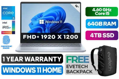 Dell Inspiron 5440 13th Gen Intel Core i5-1334U up to 4.60GHz Processor, 12MB Cache, 10x Cores, 12x Threads / 64GB DDR5 RAM / 4TB Ultra-Fast NVMe SSD / 14" FHD+ 1920x1200 Anti-glare WVA Display / Integrated Intel Iris Xe Graphics, DirectX 12 Support / Windows 11 Home (64bit) / No DVD Writer Included / Realtek RTL8851BE Wi-Fi 6 Wireless LAN / Bluetooth / Finger Print Reader / 720p HD RGB Camera, Dual-array microphones / 2x USB 3.2 Type-A / 1x USB Type-C / 1x HDMI 1.4 / 1x Audio In And Out Combo Jack / 1x SD Card Reader / Single White Color Backlit Keyboard / 1 Year Warranty / Dell Inspiron 5440 Intel Core i5 Laptop DealDell Inspiron 5440 13th Gen Intel Core i5-1334U up to 4.60GHz Processor, 12MB Cache, 10x Cores, 12x Threads / 64GB DDR5 RAM / 4TB Ultra-Fast NVMe SSD / 14" FHD+ 1920x1200 Anti-glare WVA Display / Integrated Intel Iris Xe Graphics, DirectX 12 Support / Windows 11 Home (64bit) / No DVD Writer Included / Realtek RTL8851BE Wi-Fi 6 Wireless LAN / Bluetooth / Finger Print Reader / 720p HD RGB Camera, Dual-array microphones / 2x USB 3.2 Type-A / 1x USB Type-C / 1x HDMI 1.4 / 1x Audio In And Out Combo Jack / 1x SD Card Reader / Single White Color Backlit Keyboard / 1 Year Warranty / Dell Inspiron 5440 Intel Core i5 Laptop Deal [NBDEI5440I51651211HE/64GB/4TB] / [+] GET FREE EVETECH NEO Premium Gaming Backpack+ FREE DELIVERY !