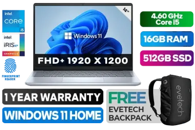 Dell Inspiron 5440 13th Gen Intel Core i5-1334U up to 4.60GHz Processor, 12MB Cache, 10x Cores, 12x Threads / 16GB DDR5 RAM / 512GB Ultra-Fast NVMe SSD / 14" FHD+ 1920x1200 Anti-glare WVA Display / Integrated Intel Iris Xe Graphics, DirectX 12 Support / Windows 11 Home (64bit) / No DVD Writer Included / Realtek RTL8851BE Wi-Fi 6 Wireless LAN / Bluetooth / Finger Print Reader / 720p HD RGB Camera, Dual-array microphones / 2x USB 3.2 Type-A / 1x USB Type-C / 1x HDMI 1.4 / 1x Audio In And Out Combo Jack / 1x SD Card Reader / Single White Color Backlit Keyboard / 1 Year Warranty / Dell Inspiron 5440 Intel Core i5 Laptop DealDell Inspiron 5440 13th Gen Intel Core i5-1334U up to 4.60GHz Processor, 12MB Cache, 10x Cores, 12x Threads / 16GB DDR5 RAM / 512GB Ultra-Fast NVMe SSD / 14" FHD+ 1920x1200 Anti-glare WVA Display / Integrated Intel Iris Xe Graphics, DirectX 12 Support / Windows 11 Home (64bit) / No DVD Writer Included / Realtek RTL8851BE Wi-Fi 6 Wireless LAN / Bluetooth / Finger Print Reader / 720p HD RGB Camera, Dual-array microphones / 2x USB 3.2 Type-A / 1x USB Type-C / 1x HDMI 1.4 / 1x Audio In And Out Combo Jack / 1x SD Card Reader / Single White Color Backlit Keyboard / 1 Year Warranty / Dell Inspiron 5440 Intel Core i5 Laptop Deal [NBDEI5440I51651211HE] / [+] GET FREE EVETECH NEO Premium Gaming Backpack+ FREE DELIVERY !