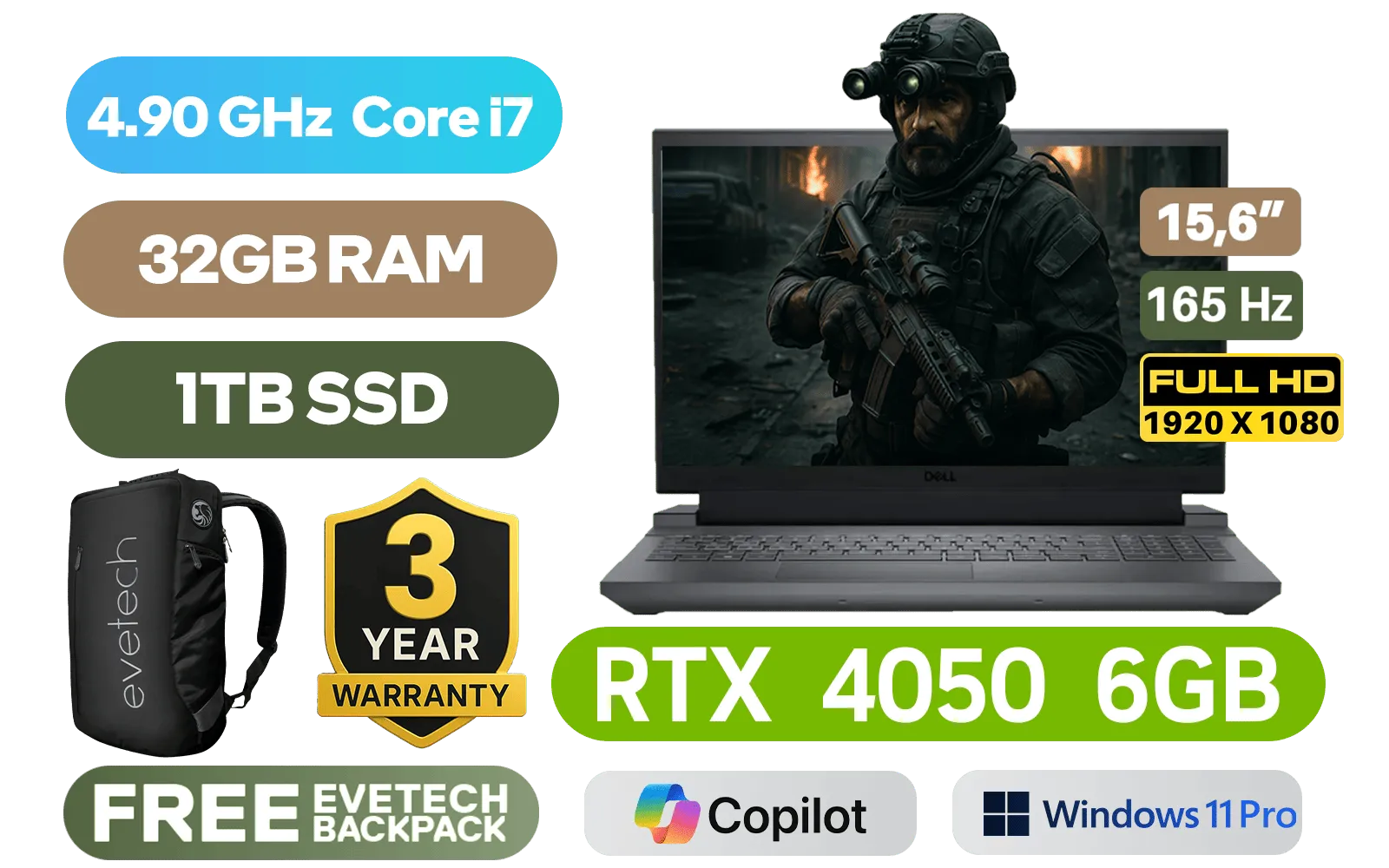 Dell Inspiron G15 5530 Intel Core i7 RTX 4050 Gaming Laptop With 32GB RAM
