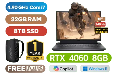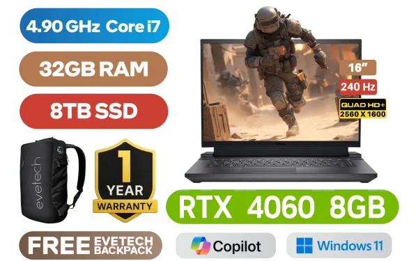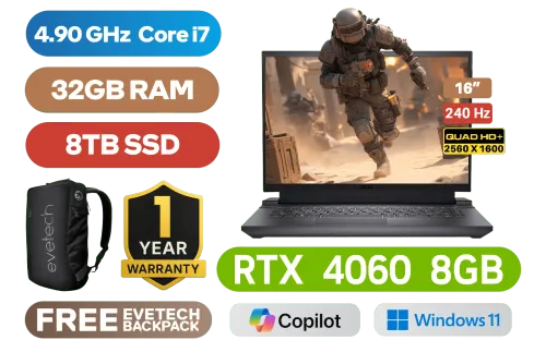 [G-SYNC] Dell Inspiron G16 7630 13th Gen Intel® Core⢠i7-13650HX up to 4.90GHz Processor, 24MB Cache, 14x Cores, 20x Threads / 32GB DDR5 RAM / 8TB Ultra-Fast NVMe SSD / 16" QHD+ (2560 x 1600) Anti-glare 240Hz Anti-Glare Display / NVIDIA 40 Series GeForce RTX 4060 8GB GDDR6 Dedicated Graphics / Windows 11 Home (64bit) / Intel WiFi 6 AX201 Wireless LAN / Bluetooth 5.2 / 720P HD Webcam with Dual-Array Microphone / 2x Integrated Stereo Speakers with Dolby Audio / 3x USB Type-A / 1x USB Type-C with DisplayPort⢠/ 1x HDMI 2.1 / 1x RJ-45 Ethernet Port / 1x Headphone and Microphone Combo Jack / White Backlit Keyboard / 1 Year Warranty / Dell Inspiron G16 7630 Intel® Core⢠i7 RTX 4060 Gaming Laptop Deal[G-SYNC] Dell Inspiron G16 7630 13th Gen Intel® Core⢠i7-13650HX up to 4.90GHz Processor, 24MB Cache, 14x Cores, 20x Threads / 32GB DDR5 RAM / 8TB Ultra-Fast NVMe SSD / 16" QHD+ (2560 x 1600) Anti-glare 240Hz Anti-Glare Display / NVIDIA 40 Series GeForce RTX 4060 8GB GDDR6 Dedicated Graphics / Windows 11 Home (64bit) / Intel WiFi 6 AX201 Wireless LAN / Bluetooth 5.2 / 720P HD Webcam with Dual-Array Microphone / 2x Integrated Stereo Speakers with Dolby Audio / 3x USB Type-A / 1x USB Type-C with DisplayPort⢠/ 1x HDMI 2.1 / 1x RJ-45 Ethernet Port / 1x Headphone and Microphone Combo Jack / White Backlit Keyboard / 1 Year Warranty / Dell Inspiron G16 7630 Intel® Core⢠i7 RTX 4060 Gaming Laptop Deal [NBDEIG7630I7321611HT/8TB] / [+] GET FREE EVETECH NEO Premium Gaming Backpack+ FREE DELIVERY !