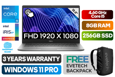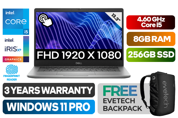 [<span style="color:red; font-size:18px;">TOUCHSCREEN</span>] Dell Latitude 3340 13th Gen Intel Core i5-1335U up to 4.60GHz Processor, 12MB Cache, 10x Cores, 12x Threads / 8GB LPDDR5 RAM / 256GB Ultra-Fast NVMe SSD / 13.3" FHD 1920x1080 Display With Touch Screen / Integrated Intel Iris Xe Graphics / <span style="color:blue; font-size: 17px;">Windows 11 Professional (64bit)</span> / No DVD Writer Included / Intel Wi-fi 6E ax211 Wireless LAN / <span style="color:#b92abe; font-size: 18px;">Finger Print Reader</span> / Bluetooth / FHD IR Web camera, Dual-array microphones / 2x USB 3.2 Type-A / 1x USB 3.2 Type-C with Power Delivery & DisplayPort / 1x HDMI 1.4 / 1x Audio In And Out Combo Jack / Single White Color Backlit Keyboard / Dell Latitude 3340 13th Gen Core i5 Touchscreen Laptop Deal[TOUCHSCREEN] Dell Latitude 3340 13th Gen Intel Core i5-1335U up to 4.60GHz Processor, 12MB Cache, 10x Cores, 12x Threads / 8GB LPDDR5 RAM / 256GB Ultra-Fast NVMe SSD / 13.3" FHD 1920x1080 Display With Touch Screen / Integrated Intel Iris Xe Graphics / Windows 11 Professional (64bit) / No DVD Writer Included / Intel Wi-fi 6E ax211 Wireless LAN / Finger Print Reader / Bluetooth / FHD IR Web camera, Dual-array microphones / 2x USB 3.2 Type-A / 1x USB 3.2 Type-C with Power Delivery & DisplayPort / 1x HDMI 1.4 / 1x Audio In And Out Combo Jack / Single White Color Backlit Keyboard / Dell Latitude 3340 13th Gen Core i5 Touchscreen Laptop Deal [N007L334013EMEA_2in1_VP] / 3 YEARS WARRANTY / [+] GET FREE EVETECH NEO Premium Gaming Backpack+ FREE DELIVERY !