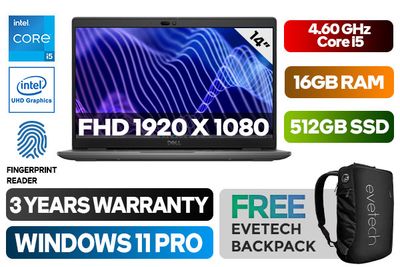 Dell Latitude 3440 13th Gen Intel Core i5-1335U up to 4.60GHz Processor, 12MB Cache, 10x Cores, 12x Threads / 16GB DDR4 RAM / 512GB Ultra-Fast NVMe SSD / 14" FHD 1920x1080 Anti-glare Display / Integrated Intel UHD Graphics / <span style="color:blue; font-size: 17px;">Windows 11 Professional (64bit)</span> / No DVD Writer Included / Intel Wi-fi 6E ax211 Wireless LAN / <span style="color:#b92abe; font-size: 18px;">Finger Print Reader</span> / Bluetooth / HD Web camera, Dual-array microphones / 3x USB 3.2 Type-A / 1x USB Type-C With DisplayPort Alt mode/Power Delivery / 1x HDMI 1.4 / 1x Audio In And Out Combo Jack / 1x RJ45 / Single White Color Backlit Keyboard / Dell Latitude 3440 13th Gen Core i5 Laptop DealDell Latitude 3440 13th Gen Intel Core i5-1335U up to 4.60GHz Processor, 12MB Cache, 10x Cores, 12x Threads / 16GB DDR4 RAM / 512GB Ultra-Fast NVMe SSD / 14" FHD 1920x1080 Anti-glare Display / Integrated Intel UHD Graphics / Windows 11 Professional (64bit) / No DVD Writer Included / Intel Wi-fi 6E ax211 Wireless LAN / Finger Print Reader / Bluetooth / HD Web camera, Dual-array microphones / 3x USB 3.2 Type-A / 1x USB Type-C With DisplayPort Alt mode/Power Delivery / 1x HDMI 1.4 / 1x Audio In And Out Combo Jack / 1x RJ45 / Single White Color Backlit Keyboard / Dell Latitude 3440 13th Gen Core i5 Laptop Deal [N053L344014EMEA_AC_VP/16GB/512GB] / 3 YEARS WARRANTY / [+] GET FREE EVETECH NEO Premium Gaming Backpack+ FREE DELIVERY !