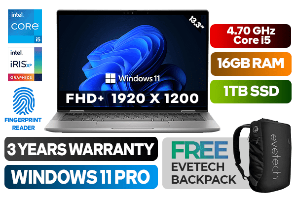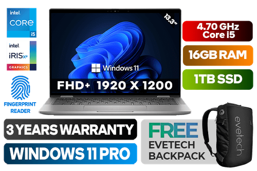 Dell Latitude 7340 13th Gen Intel Core i5-1345U up to 4.70GHz Processor, 12MB Cache, 10x Cores, 12x Threads / 16GB LPDDR5 RAM / 1TB Ultra-Fast NVMe SSD / 13.3" FHD+ 1920 x 1200 Anti-glare Display / Integrated Intel Iris Xe Graphics / <span style="font-size: 20px; color: #00BFFF; font-weight: bold;">Windows 11 Professional (64bit)</span> / No DVD Writer Included / Intel Wi-fi 6E ax211 Wireless LAN / Finger Print Reader / Bluetooth / 5MP IR camera Camera / 1x USB 3.2 Type-A / 2x USB Type-C With Thunderbolt 4 ports with DisplayPort / 1x HDMI 2.0 / 1x Audio In And Out Combo Jack / Single White Color Backlit Keyboard / Dell Latitude 7340 13th Gen Core i5 Laptop DealDell Latitude 7340 13th Gen Intel Core i5-1345U up to 4.70GHz Processor, 12MB Cache, 10x Cores, 12x Threads / 16GB LPDDR5 RAM / 1TB Ultra-Fast NVMe SSD / 13.3" FHD+ 1920 x 1200 Anti-glare Display / Integrated Intel Iris Xe Graphics / Windows 11 Professional (64bit) / No DVD Writer Included / Intel Wi-fi 6E ax211 Wireless LAN / Finger Print Reader / Bluetooth / 5MP IR camera Camera / 1x USB 3.2 Type-A / 2x USB Type-C With Thunderbolt 4 ports with DisplayPort / 1x HDMI 2.0 / 1x Audio In And Out Combo Jack / Single White Color Backlit Keyboard / Dell Latitude 7340 13th Gen Core i5 Laptop Deal [N037L734013EMEA_VP/1TB] / 3 YEARS WARRANTY / [+] GET FREE EVETECH NEO Premium Gaming Backpack+ FREE DELIVERY !