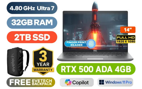 DELL Precision 3490 Intel Core Ultra 7-155H up to 4.80GHz Processor, 24MB Cache, 16x Cores, 22x Threads / 32GB DDR5 RAM / 2TB Ultra-Fast NVMe SSD / 14" FHD 1920x1080 Anti-Glare Display / NVIDIA RTX 500 ADA Generation 4GB GDDR6 Dedicated Workstation Graphics Card / <span style="font-size: 20px; color: #00BFFF; font-weight: bold;">Windows 11 Professional (64bit)</span> / Fingerprint Reader / Intel Wi-Fi 6E AX211 Wireless LAN / Bluetooth® / FHD IR camera with privacy shutter / 2x USB 3.2 Type-A / 2x USB Type-C Thunderbolt 4 / 1x HDMI / 1x Audio and Microphone Combo Jack / 1x RJ-45 Ethernet port / No DVD Drive Included / White Backlit Keyboard / Stereo speakers with Waves MaxxAudio® Pro Audio / DELL Precision 3490 Intel Core Ultra 7 RTX 500 ADA Workstation Laptop DealDELL Precision 3490 Intel Core Ultra 7-155H up to 4.80GHz Processor, 24MB Cache, 16x Cores, 22x Threads / 32GB DDR5 RAM / 2TB Ultra-Fast NVMe SSD / 14" FHD 1920x1080 Anti-Glare Display / NVIDIA RTX 500 ADA Generation 4GB GDDR6 Dedicated Workstation Graphics Card / Windows 11 Professional (64bit) / Fingerprint Reader / Intel Wi-Fi 6E AX211 Wireless LAN / Bluetooth® / FHD IR camera with privacy shutter / 2x USB 3.2 Type-A / 2x USB Type-C Thunderbolt 4 / 1x HDMI / 1x Audio and Microphone Combo Jack / 1x RJ-45 Ethernet port / No DVD Drive Included / White Backlit Keyboard / Stereo speakers with Waves MaxxAudio® Pro Audio / DELL Precision 3490 Intel Core Ultra 7 RTX 500 ADA Workstation Laptop Deal [N004P3490EMEAVP/2TB] / [+] GET FREE EVETECH NEO Premium Gaming Backpack / 3 YEARS WARRANTY / [+] GET FREE Promate Baton TWS Earbuds+ FREE DELIVERY !