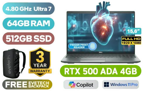 DELL Precision 3590 Intel Core Ultra 7-155H up to 4.80GHz Processor, 24MB Cache, 16x Cores, 22x Threads / 64GB DDR5 RAM / 512GB Ultra-Fast NVMe SSD / 15.6" FHD 1920x1080 Anti-Glare Display / NVIDIA RTX 500 ADA Generation 4GB GDDR6 Dedicated Workstation Graphics Card / <span style="font-size: 20px; color: #00BFFF; font-weight: bold;">Windows 11 Professional (64bit)</span> / Intel Wi-Fi 6E AX211 Wireless LAN / Bluetooth® / FHD IR camera with privacy shutter / 2x USB Type-A / 2x USB Type-C Thunderbolt 4 / 1x HDMI / 1x Audio and Microphone Combo Jack / 1x RJ-45 Ethernet Port / 1x Smart Card Reader / MicroSD Card Reader / White Backlit Keyboard / Fingerprint Reader / DELL Precision 3590 Intel Core Ultra 7 RTX 500 ADA Workstation Laptop DealDELL Precision 3590 Intel Core Ultra 7-155H up to 4.80GHz Processor, 24MB Cache, 16x Cores, 22x Threads / 64GB DDR5 RAM / 512GB Ultra-Fast NVMe SSD / 15.6" FHD 1920x1080 Anti-Glare Display / NVIDIA RTX 500 ADA Generation 4GB GDDR6 Dedicated Workstation Graphics Card / Windows 11 Professional (64bit) / Intel Wi-Fi 6E AX211 Wireless LAN / Bluetooth® / FHD IR camera with privacy shutter / 2x USB Type-A / 2x USB Type-C Thunderbolt 4 / 1x HDMI / 1x Audio and Microphone Combo Jack / 1x RJ-45 Ethernet Port / 1x Smart Card Reader / MicroSD Card Reader / White Backlit Keyboard / Fingerprint Reader / DELL Precision 3590 Intel Core Ultra 7 RTX 500 ADA Workstation Laptop Deal [N001P3590EMEA/64GB] / 3 YEARS WARRANTY / [+] GET FREE EVETECH NEO Premium Gaming Backpack+ FREE DELIVERY !