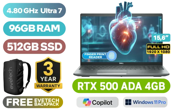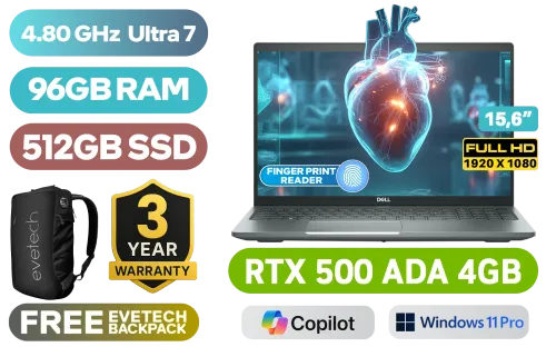 DELL Precision 3590 Intel Core Ultra 7-155H up to 4.80GHz Processor, 24MB Cache, 16x Cores, 22x Threads / 96GB DDR5 RAM / 512GB Ultra-Fast NVMe SSD / 15.6" FHD 1920x1080 Anti-Glare Display / NVIDIA RTX 500 ADA Generation 4GB GDDR6 Dedicated Workstation Graphics Card / <span style="font-size: 20px; color: #00BFFF; font-weight: bold;">Windows 11 Professional (64bit)</span> / Intel Wi-Fi 6E AX211 Wireless LAN / Bluetooth® / FHD IR camera with privacy shutter / 2x USB Type-A / 2x USB Type-C Thunderbolt 4 / 1x HDMI / 1x Audio and Microphone Combo Jack / 1x RJ-45 Ethernet Port / 1x Smart Card Reader / MicroSD Card Reader / White Backlit Keyboard / Fingerprint Reader / DELL Precision 3590 Intel Core Ultra 7 RTX 500 ADA Workstation Laptop DealDELL Precision 3590 Intel Core Ultra 7-155H up to 4.80GHz Processor, 24MB Cache, 16x Cores, 22x Threads / 96GB DDR5 RAM / 512GB Ultra-Fast NVMe SSD / 15.6" FHD 1920x1080 Anti-Glare Display / NVIDIA RTX 500 ADA Generation 4GB GDDR6 Dedicated Workstation Graphics Card / Windows 11 Professional (64bit) / Intel Wi-Fi 6E AX211 Wireless LAN / Bluetooth® / FHD IR camera with privacy shutter / 2x USB Type-A / 2x USB Type-C Thunderbolt 4 / 1x HDMI / 1x Audio and Microphone Combo Jack / 1x RJ-45 Ethernet Port / 1x Smart Card Reader / MicroSD Card Reader / White Backlit Keyboard / Fingerprint Reader / DELL Precision 3590 Intel Core Ultra 7 RTX 500 ADA Workstation Laptop Deal [N001P3590EMEA/96GB] / 3 YEARS WARRANTY / [+] GET FREE EVETECH NEO Premium Gaming Backpack+ FREE DELIVERY !