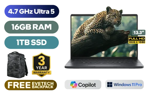 Dell Pro 13 Premium Intel® Core™ Ultra 5 236V up to 4.7GHz, 8MB Cache, 8x Cores, 8x Threads / 16GB LPDDR5x RAM / 1TB Ultra-Fast NVMe SSD / 13.3" FHD+ (1920 x 1200) Anti-Glare IPS-Level Display / Integrated Intel Arc Graphics / <span style="color:blue; font-size: 17px;">Windows 11 Pro</span> / Intel® BE201 Wi-Fi 7 Wireless LAN / Bluetooth® 5.4 / 8MP IR Webcam with Privacy Shutter / 1x USB Type-A / 2x USB Type-C (Supports Thunderbolt™ 4 / DisplayPort) / 1x HDMI / 1x Microphone & Headset Combo Jack / 1x SIM Card Tray / White Backlit Keyboard / 2x 2W Speakers with Cirrus Logic Smart Amp / Dell Pro 13 Premium Intel® Core™ Ultra 5 236V Laptop DealDell Pro 13 Premium Intel® Core™ Ultra 5 236V up to 4.7GHz, 8MB Cache, 8x Cores, 8x Threads / 16GB LPDDR5x RAM / 1TB Ultra-Fast NVMe SSD / 13.3" FHD+ (1920 x 1200) Anti-Glare IPS-Level Display / Integrated Intel Arc Graphics / Windows 11 Pro / Intel® BE201 Wi-Fi 7 Wireless LAN / Bluetooth® 5.4 / 8MP IR Webcam with Privacy Shutter / 1x USB Type-A / 2x USB Type-C (Supports Thunderbolt™ 4 / DisplayPort) / 1x HDMI / 1x Microphone & Headset Combo Jack / 1x SIM Card Tray / White Backlit Keyboard / 2x 2W Speakers with Cirrus Logic Smart Amp / Dell Pro 13 Premium Intel® Core™ Ultra 5 236V Laptop Deal [BTO203_PA13250/1TB] / 3 YEARS WARRANTY / [+] GET FREE EVETECH DASH Premium Gaming Backpack+ FREE DELIVERY !
