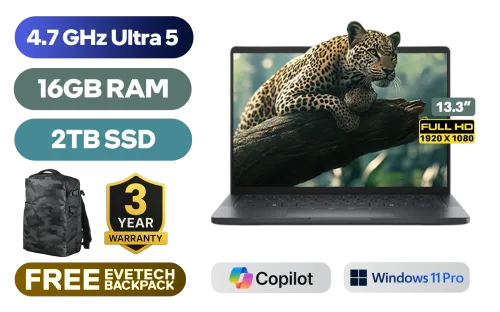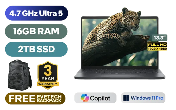 Dell Pro 13 Premium Intel® Core™ Ultra 5 236V up to 4.7GHz, 8MB Cache, 8x Cores, 8x Threads / 16GB LPDDR5x RAM / 2TB Ultra-Fast NVMe SSD / 13.3" FHD+ (1920 x 1200) Anti-Glare IPS-Level Display / Integrated Intel Arc Graphics / <span style="color:blue; font-size: 17px;">Windows 11 Pro</span> / Intel® BE201 Wi-Fi 7 Wireless LAN / Bluetooth® 5.4 / 8MP IR Webcam with Privacy Shutter / 1x USB Type-A / 2x USB Type-C (Supports Thunderbolt™ 4 / DisplayPort) / 1x HDMI / 1x Microphone & Headset Combo Jack / 1x SIM Card Tray / White Backlit Keyboard / 2x 2W Speakers with Cirrus Logic Smart Amp / Dell Pro 13 Premium Intel® Core™ Ultra 5 236V Laptop DealDell Pro 13 Premium Intel® Core™ Ultra 5 236V up to 4.7GHz, 8MB Cache, 8x Cores, 8x Threads / 16GB LPDDR5x RAM / 2TB Ultra-Fast NVMe SSD / 13.3" FHD+ (1920 x 1200) Anti-Glare IPS-Level Display / Integrated Intel Arc Graphics / Windows 11 Pro / Intel® BE201 Wi-Fi 7 Wireless LAN / Bluetooth® 5.4 / 8MP IR Webcam with Privacy Shutter / 1x USB Type-A / 2x USB Type-C (Supports Thunderbolt™ 4 / DisplayPort) / 1x HDMI / 1x Microphone & Headset Combo Jack / 1x SIM Card Tray / White Backlit Keyboard / 2x 2W Speakers with Cirrus Logic Smart Amp / Dell Pro 13 Premium Intel® Core™ Ultra 5 236V Laptop Deal [BTO203_PA13250/2TB] / 3 YEARS WARRANTY / [+] GET FREE EVETECH DASH Premium Gaming Backpack+ FREE DELIVERY !