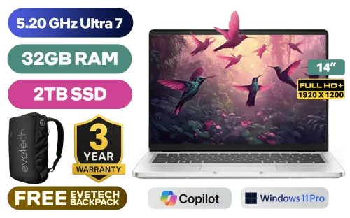Dell Pro 14 PC14250 Intel Core Ultra 7-255U up to 5.20GHz Processor, 12MB Cache, 12x Cores, 14x Threads / 32GB DDR5 RAM / 2TB Ultra-Fast NVMe SSD / 14" FHD+ (1920 x 1200) Anti-Glare IPS-Level Display / Integrated Intel Graphics / <span style="font-size: 20px; color: #00BFFF; font-weight: bold;">Windows 11 Professional (64bit)</span> / Intel Wi-Fi 6E AX211 Wireless LAN / Bluetooth 5.3 / FHD 1080p IR Web Camera / 2x USB Type-A / 2x USB Type-C Thunderbolt 4 (DisplayPort and Power Delivery) / 1x HDMI / 1x RJ45 / 1 x Headphone & Microphone Audio Combo Jack / Fingerprint Reader / White Backlit keyboard / Stereo Speakers with Waves MaxxAudio Pro / Dell Pro 14 PC14250 Intel Core Ultra 7 Laptop DealDell Pro 14 PC14250 Intel Core Ultra 7-255U up to 5.20GHz Processor, 12MB Cache, 12x Cores, 14x Threads / 32GB DDR5 RAM / 2TB Ultra-Fast NVMe SSD / 14" FHD+ (1920 x 1200) Anti-Glare IPS-Level Display / Integrated Intel Graphics / Windows 11 Professional (64bit) / Intel Wi-Fi 6E AX211 Wireless LAN / Bluetooth 5.3 / FHD 1080p IR Web Camera / 2x USB Type-A / 2x USB Type-C Thunderbolt 4 (DisplayPort and Power Delivery) / 1x HDMI / 1x RJ45 / 1 x Headphone & Microphone Audio Combo Jack / Fingerprint Reader / White Backlit keyboard / Stereo Speakers with Waves MaxxAudio Pro / Dell Pro 14 PC14250 Intel Core Ultra 7 Laptop Deal [NBDEBTO107PC14250EM/32GB/2TB] / [+] GET FREE EVETECH NEO Premium Gaming Backpack / 3 YEARS WARRANTY + FREE DELIVERY !