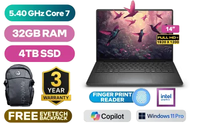 Dell Pro 14 Essential PV14250 Intel Core 7-150U up to 5.40GHz Processor, 12MB Cache, 10x Cores, 12x Threads / 32GB DDR5 RAM / 4TB Ultra-Fast NVME SSD / 14" FHD+ (1920x1200) IPS-Level Anti-glare Display / Integrated Intel Graphics / <span style="font-size: 20px; color: #00BFFF; font-weight: bold;">Windows 11 Professional (64bit)</span> / Realtek RTL8852BE Wi-Fi 6 Wireless LAN / Bluetooth 5.2 / 720p HD Web Camera / 2x USB Type-A / 1x USB Type-C (Power Delivery and DisplayPort) / 1x HDMI / 1x Microphone and Headphone Combo Jack / 1x SD Card Reader / Fingerprint Reader / Kensington Lock / White Backlit Keyboard / 2W x 2 Stereo Speaker with Dolby Atmos Core Audio / Dell Pro 14 Essential PV14250 Intel Core 7 Laptop DealDell Pro 14 Essential PV14250 Intel Core 7-150U up to 5.40GHz Processor, 12MB Cache, 10x Cores, 12x Threads / 32GB DDR5 RAM / 4TB Ultra-Fast NVME SSD / 14" FHD+ (1920x1200) IPS-Level Anti-glare Display / Integrated Intel Graphics / Windows 11 Professional (64bit) / Realtek RTL8852BE Wi-Fi 6 Wireless LAN / Bluetooth 5.2 / 720p HD Web Camera / 2x USB Type-A / 1x USB Type-C (Power Delivery and DisplayPort) / 1x HDMI / 1x Microphone and Headphone Combo Jack / 1x SD Card Reader / Fingerprint Reader / Kensington Lock / White Backlit Keyboard / 2W x 2 Stereo Speaker with Dolby Atmos Core Audio / Dell Pro 14 Essential PV14250 Intel Core 7 Laptop Deal [NBDEPV14250C716111PE/32GB/4TB] / 3 YEARS WARRANTY / [+] GET FREE EVETECH FLUX Premium Gaming Backpack+ FREE DELIVERY !
