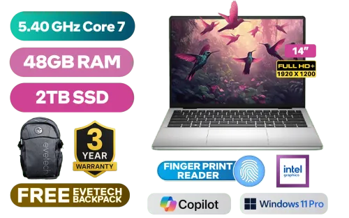 Dell Pro 14 Essential PV14250 Intel Core 7-150U up to 5.40GHz Processor, 12MB Cache, 10x Cores, 12x Threads / 48GB DDR5 RAM / 2TB Ultra-Fast NVME SSD / 14" FHD+ (1920x1200) IPS-Level Anti-glare Display / Integrated Intel Graphics / <span style="font-size: 20px; color: #00BFFF; font-weight: bold;">Windows 11 Professional (64bit)</span> / Realtek RTL8852BE Wi-Fi 6 Wireless LAN / Bluetooth 5.2 / 720p HD Web Camera / 2x USB Type-A / 1x USB Type-C (Power Delivery and DisplayPort) / 1x HDMI / 1x Microphone and Headphone Combo Jack / 1x SD Card Reader / Fingerprint Reader / Kensington Lock / White Backlit Keyboard / 2W x 2 Stereo Speaker with Dolby Atmos Core Audio / Dell Pro 14 Essential PV14250 Intel Core 7 Laptop DealDell Pro 14 Essential PV14250 Intel Core 7-150U up to 5.40GHz Processor, 12MB Cache, 10x Cores, 12x Threads / 48GB DDR5 RAM / 2TB Ultra-Fast NVME SSD / 14" FHD+ (1920x1200) IPS-Level Anti-glare Display / Integrated Intel Graphics / Windows 11 Professional (64bit) / Realtek RTL8852BE Wi-Fi 6 Wireless LAN / Bluetooth 5.2 / 720p HD Web Camera / 2x USB Type-A / 1x USB Type-C (Power Delivery and DisplayPort) / 1x HDMI / 1x Microphone and Headphone Combo Jack / 1x SD Card Reader / Fingerprint Reader / Kensington Lock / White Backlit Keyboard / 2W x 2 Stereo Speaker with Dolby Atmos Core Audio / Dell Pro 14 Essential PV14250 Intel Core 7 Laptop Deal [NBDEPV14250C716111PE/48GB/2TB] / 3 YEARS WARRANTY / [+] GET FREE EVETECH FLUX Premium Gaming Backpack+ FREE DELIVERY !