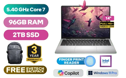 Dell Pro 14 Essential PV14250 Intel Core 7-150U up to 5.40GHz Processor, 12MB Cache, 10x Cores, 12x Threads / 96GB DDR5 RAM / 2TB Ultra-Fast NVME SSD / 14" FHD+ (1920x1200) IPS-Level Anti-glare Display / Integrated Intel Graphics / <span style="font-size: 20px; color: #00BFFF; font-weight: bold;">Windows 11 Professional (64bit)</span> / Realtek RTL8852BE Wi-Fi 6 Wireless LAN / Bluetooth 5.2 / 720p HD Web Camera / 2x USB Type-A / 1x USB Type-C (Power Delivery and DisplayPort) / 1x HDMI / 1x Microphone and Headphone Combo Jack / 1x SD Card Reader / Fingerprint Reader / Kensington Lock / White Backlit Keyboard / 2W x 2 Stereo Speaker with Dolby Atmos Core Audio / Dell Pro 14 Essential PV14250 Intel Core 7 Laptop DealDell Pro 14 Essential PV14250 Intel Core 7-150U up to 5.40GHz Processor, 12MB Cache, 10x Cores, 12x Threads / 96GB DDR5 RAM / 2TB Ultra-Fast NVME SSD / 14" FHD+ (1920x1200) IPS-Level Anti-glare Display / Integrated Intel Graphics / Windows 11 Professional (64bit) / Realtek RTL8852BE Wi-Fi 6 Wireless LAN / Bluetooth 5.2 / 720p HD Web Camera / 2x USB Type-A / 1x USB Type-C (Power Delivery and DisplayPort) / 1x HDMI / 1x Microphone and Headphone Combo Jack / 1x SD Card Reader / Fingerprint Reader / Kensington Lock / White Backlit Keyboard / 2W x 2 Stereo Speaker with Dolby Atmos Core Audio / Dell Pro 14 Essential PV14250 Intel Core 7 Laptop Deal [NBDEPV14250C716111PE/96GB/2TB] / 3 YEARS WARRANTY / [+] GET FREE EVETECH FLUX Premium Gaming Backpack+ FREE DELIVERY !
