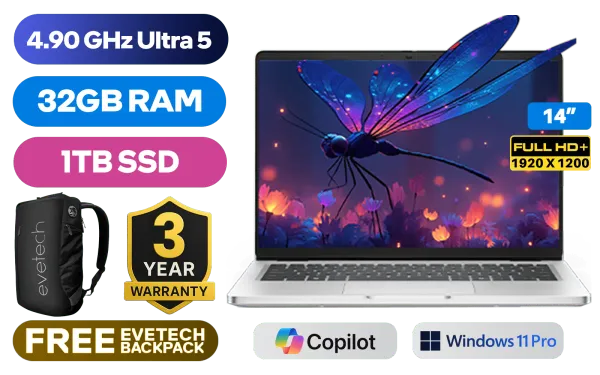 Dell Pro 14 PC14250 Intel® Core™ Ultra 5-235U up to 4.90GHz Processor, 12MB Cache, 12x Cores, 14x Threads / 32GB DDR5 RAM / 1TB Ultra-Fast NVMe SSD / 14" FHD+ (1920 x 1200) IPS-Level Display / Integrated Intel® Graphics / <span style="font-size: 20px; color: #00BFFF; font-weight: bold;">Windows 11 Professional (64bit)</span> / Intel® WiFi 6E AX211 Wireless LAN / Bluetooth 5.3 / 1080p FHD IR Camera / 2 x USB Type-A / 2 x USB Type-C (Thunderbolt™ 4 / DisplayPort™ 2.1 / Power Delivery 3.1 ) / 1 x HDMI / 1 x Headphone & Microphone Combo Jack / 1x RJ-45 / Waves MaxxAudio® Pro Stereo Speakers / Fingerprint Reader / White Backlit keyboard / Dell Pro 14 PC14250 Core™ Ultra 5 Laptop Dell Pro 14 PC14250 Intel® Core™ Ultra 5-235U up to 4.90GHz Processor, 12MB Cache, 12x Cores, 14x Threads / 32GB DDR5 RAM / 1TB Ultra-Fast NVMe SSD / 14" FHD+ (1920 x 1200) IPS-Level Display / Integrated Intel® Graphics / Windows 11 Professional (64bit) / Intel® WiFi 6E AX211 Wireless LAN / Bluetooth 5.3 / 1080p FHD IR Camera / 2 x USB Type-A / 2 x USB Type-C (Thunderbolt™ 4 / DisplayPort™ 2.1 / Power Delivery 3.1 ) / 1 x HDMI / 1 x Headphone & Microphone Combo Jack / 1x RJ-45 / Waves MaxxAudio® Pro Stereo Speakers / Fingerprint Reader / White Backlit keyboard / Dell Pro 14 PC14250 Core™ Ultra 5 Laptop [NBDEBTO106PC14250EM/32GB/1TB] / [+] GET FREE EVETECH NEO Premium Gaming Backpack / 3 YEARS WARRANTY + FREE DELIVERY !