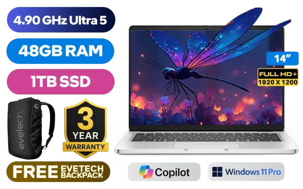 Dell Pro 14 PC14250 Intel® Core™ Ultra 5-235U up to 4.90GHz Processor, 12MB Cache, 12x Cores, 14x Threads / 48GB DDR5 RAM / 1TB Ultra-Fast NVMe SSD / 14" FHD+ (1920 x 1200) IPS-Level Display / Integrated Intel® Graphics / <span style="font-size: 20px; color: #00BFFF; font-weight: bold;">Windows 11 Professional (64bit)</span> / Intel® WiFi 6E AX211 Wireless LAN / Bluetooth 5.3 / 1080p FHD IR Camera / 2 x USB Type-A / 2 x USB Type-C (Thunderbolt™ 4 / DisplayPort™ 2.1 / Power Delivery 3.1 ) / 1 x HDMI / 1 x Headphone & Microphone Combo Jack / 1x RJ-45 / Waves MaxxAudio® Pro Stereo Speakers / Fingerprint Reader / White Backlit keyboard / Dell Pro 14 PC14250 Core™ Ultra 5 Laptop Dell Pro 14 PC14250 Intel® Core™ Ultra 5-235U up to 4.90GHz Processor, 12MB Cache, 12x Cores, 14x Threads / 48GB DDR5 RAM / 1TB Ultra-Fast NVMe SSD / 14" FHD+ (1920 x 1200) IPS-Level Display / Integrated Intel® Graphics / Windows 11 Professional (64bit) / Intel® WiFi 6E AX211 Wireless LAN / Bluetooth 5.3 / 1080p FHD IR Camera / 2 x USB Type-A / 2 x USB Type-C (Thunderbolt™ 4 / DisplayPort™ 2.1 / Power Delivery 3.1 ) / 1 x HDMI / 1 x Headphone & Microphone Combo Jack / 1x RJ-45 / Waves MaxxAudio® Pro Stereo Speakers / Fingerprint Reader / White Backlit keyboard / Dell Pro 14 PC14250 Core™ Ultra 5 Laptop [NBDEBTO106PC14250EM/48GB/1TB] / [+] GET FREE EVETECH NEO Premium Gaming Backpack / 3 YEARS WARRANTY + FREE DELIVERY !