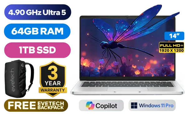 Dell Pro 14 PC14250 Intel® Core™ Ultra 5-235U up to 4.90GHz Processor, 12MB Cache, 12x Cores, 14x Threads / 64GB DDR5 RAM / 1TB Ultra-Fast NVMe SSD / 14" FHD+ (1920 x 1200) IPS-Level Display / Integrated Intel® Graphics / <span style="font-size: 20px; color: #00BFFF; font-weight: bold;">Windows 11 Professional (64bit)</span> / Intel® WiFi 6E AX211 Wireless LAN / Bluetooth 5.3 / 1080p FHD IR Camera / 2 x USB Type-A / 2 x USB Type-C (Thunderbolt™ 4 / DisplayPort™ 2.1 / Power Delivery 3.1 ) / 1 x HDMI / 1 x Headphone & Microphone Combo Jack / 1x RJ-45 / Waves MaxxAudio® Pro Stereo Speakers / Fingerprint Reader / White Backlit keyboard / Dell Pro 14 PC14250 Core™ Ultra 5 Laptop Dell Pro 14 PC14250 Intel® Core™ Ultra 5-235U up to 4.90GHz Processor, 12MB Cache, 12x Cores, 14x Threads / 64GB DDR5 RAM / 1TB Ultra-Fast NVMe SSD / 14" FHD+ (1920 x 1200) IPS-Level Display / Integrated Intel® Graphics / Windows 11 Professional (64bit) / Intel® WiFi 6E AX211 Wireless LAN / Bluetooth 5.3 / 1080p FHD IR Camera / 2 x USB Type-A / 2 x USB Type-C (Thunderbolt™ 4 / DisplayPort™ 2.1 / Power Delivery 3.1 ) / 1 x HDMI / 1 x Headphone & Microphone Combo Jack / 1x RJ-45 / Waves MaxxAudio® Pro Stereo Speakers / Fingerprint Reader / White Backlit keyboard / Dell Pro 14 PC14250 Core™ Ultra 5 Laptop [NBDEBTO106PC14250EM/64GB/1TB] / [+] GET FREE EVETECH NEO Premium Gaming Backpack / 3 YEARS WARRANTY + FREE DELIVERY !