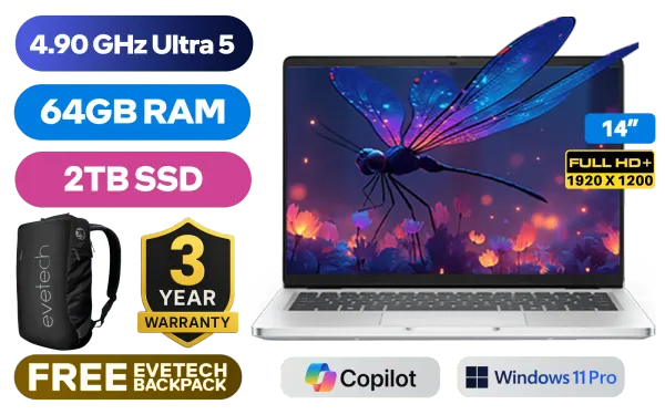 Dell Pro 14 PC14250 Intel® Core™ Ultra 5-235U up to 4.90GHz Processor, 12MB Cache, 12x Cores, 14x Threads / 64GB DDR5 RAM / 2TB Ultra-Fast NVMe SSD / 14" FHD+ (1920 x 1200) IPS-Level Display / Integrated Intel® Graphics / <span style="font-size: 20px; color: #00BFFF; font-weight: bold;">Windows 11 Professional (64bit)</span> / Intel® WiFi 6E AX211 Wireless LAN / Bluetooth 5.3 / 1080p FHD IR Camera / 2 x USB Type-A / 2 x USB Type-C (Thunderbolt™ 4 / DisplayPort™ 2.1 / Power Delivery 3.1 ) / 1 x HDMI / 1 x Headphone & Microphone Combo Jack / 1x RJ-45 / Waves MaxxAudio® Pro Stereo Speakers / Fingerprint Reader / White Backlit keyboard / Dell Pro 14 PC14250 Core™ Ultra 5 Laptop Dell Pro 14 PC14250 Intel® Core™ Ultra 5-235U up to 4.90GHz Processor, 12MB Cache, 12x Cores, 14x Threads / 64GB DDR5 RAM / 2TB Ultra-Fast NVMe SSD / 14" FHD+ (1920 x 1200) IPS-Level Display / Integrated Intel® Graphics / Windows 11 Professional (64bit) / Intel® WiFi 6E AX211 Wireless LAN / Bluetooth 5.3 / 1080p FHD IR Camera / 2 x USB Type-A / 2 x USB Type-C (Thunderbolt™ 4 / DisplayPort™ 2.1 / Power Delivery 3.1 ) / 1 x HDMI / 1 x Headphone & Microphone Combo Jack / 1x RJ-45 / Waves MaxxAudio® Pro Stereo Speakers / Fingerprint Reader / White Backlit keyboard / Dell Pro 14 PC14250 Core™ Ultra 5 Laptop [NBDEBTO106PC14250EM/64GB/2TB] / [+] GET FREE EVETECH NEO Premium Gaming Backpack / 3 YEARS WARRANTY + FREE DELIVERY !