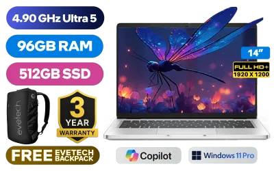 Dell Pro 14 PC14250 Intel® Core™ Ultra 5-235U up to 4.90GHz Processor, 12MB Cache, 12x Cores, 14x Threads / 96GB DDR5 RAM / 512GB Ultra-Fast NVMe SSD / 14" FHD+ (1920 x 1200) IPS-Level Display / Integrated Intel® Graphics / <span style="font-size: 20px; color: #00BFFF; font-weight: bold;">Windows 11 Professional (64bit)</span> / Intel® WiFi 6E AX211 Wireless LAN / Bluetooth 5.3 / 1080p FHD IR Camera / 2 x USB Type-A / 2 x USB Type-C (Thunderbolt™ 4 / DisplayPort™ 2.1 / Power Delivery 3.1 ) / 1 x HDMI / 1 x Headphone & Microphone Combo Jack / 1x RJ-45 / Waves MaxxAudio® Pro Stereo Speakers / Fingerprint Reader / White Backlit keyboard / Dell Pro 14 PC14250 Core™ Ultra 5 Laptop Dell Pro 14 PC14250 Intel® Core™ Ultra 5-235U up to 4.90GHz Processor, 12MB Cache, 12x Cores, 14x Threads / 96GB DDR5 RAM / 512GB Ultra-Fast NVMe SSD / 14" FHD+ (1920 x 1200) IPS-Level Display / Integrated Intel® Graphics / Windows 11 Professional (64bit) / Intel® WiFi 6E AX211 Wireless LAN / Bluetooth 5.3 / 1080p FHD IR Camera / 2 x USB Type-A / 2 x USB Type-C (Thunderbolt™ 4 / DisplayPort™ 2.1 / Power Delivery 3.1 ) / 1 x HDMI / 1 x Headphone & Microphone Combo Jack / 1x RJ-45 / Waves MaxxAudio® Pro Stereo Speakers / Fingerprint Reader / White Backlit keyboard / Dell Pro 14 PC14250 Core™ Ultra 5 Laptop [NBDEBTO106PC14250EM/96GB] / [+] GET FREE EVETECH NEO Premium Gaming Backpack / 3 YEARS WARRANTY + FREE DELIVERY !