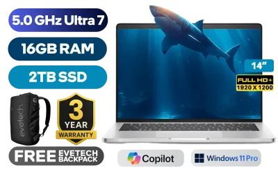 Dell Pro 14 Plus BTO216 4250-6976 Intel® Core™ Ultra 7-266V up to 5.0GHz, 12MB Cache Processor, 8x Cores, 8x Threads / 16GB LPDDR5X RAM / 2TB Ultra-Fast NVME SSD / 14" FHD+ (1920x1200) IPS-Level Display / Integrated Intel Arc 140V Graphics / <span style="color:blue; font-size: 17px;">Windows 11 Professional (64bit)</span> / Intel WiFi 6E AX211 Wireless LAN / Bluetooth 5.4 / 5MP IR Camera with Privacy Shutter / 2x USB Type-A / 2x USB Type-C (Supports Thunderbolt 4 / DisplayPort 2.1 / Power Delivery) / 1x HDMI / 1x SIM Card Slot / 1x Microphone and Headphone Combo Jack / Fingerpint Reader / Kensington Lock / White backlit Keyboard / 4 Stereo speakers with Cirrus Logic codec / Dell Pro 14 Plus BTO216 Core Ultra 7 Laptop DealDell Pro 14 Plus BTO216 4250-6976 Intel® Core™ Ultra 7-266V up to 5.0GHz, 12MB Cache Processor, 8x Cores, 8x Threads / 16GB LPDDR5X RAM / 2TB Ultra-Fast NVME SSD / 14" FHD+ (1920x1200) IPS-Level Display / Integrated Intel Arc 140V Graphics / Windows 11 Professional (64bit) / Intel WiFi 6E AX211 Wireless LAN / Bluetooth 5.4 / 5MP IR Camera with Privacy Shutter / 2x USB Type-A / 2x USB Type-C (Supports Thunderbolt 4 / DisplayPort 2.1 / Power Delivery) / 1x HDMI / 1x SIM Card Slot / 1x Microphone and Headphone Combo Jack / Fingerpint Reader / Kensington Lock / White backlit Keyboard / 4 Stereo speakers with Cirrus Logic codec / Dell Pro 14 Plus BTO216 Core Ultra 7 Laptop Deal [NBDEBTO216PB14250EM/2TB] / [+] GET FREE EVETECH NEO Premium Gaming Backpack / 3 YEARS WARRANTY + FREE DELIVERY !