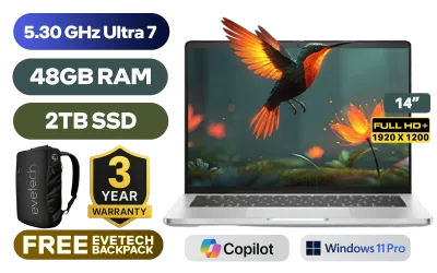 Dell Pro 14 Plus Intel® Core™ Ultra 7-265U up to 5.30GHz, 12MB Cache Processor, 12x Cores, 14x Threads / 48GB DDR5 RAM / 2TB Ultra-Fast NVME SSD / 14" FHD+ (1920x1200) Anti-glare, IPS-Level Display / Integrated Intel® Graphics / <span style="color:blue; font-size: 17px;">Windows 11 Professional (64bit)</span> / Intel WiFi 6E AX211 Wireless LAN / Bluetooth 5.3 / 1080p FHD IR Camera / 2x USB Type-A / 2x USB Type-C (Supports Thunderbolt 4 / DisplayPort 2.1) / 1x HDMI / 1x SIM Card Slot / 1x Microphone and Headphone Combo Jack / Fingerpint Reader / Kensington Lock / White backlight Keyboard / 4 Stereo speakers with Cirrus Logic codec / Dell Pro 14 Plus Core Ultra 7 Laptop DealDell Pro 14 Plus Intel® Core™ Ultra 7-265U up to 5.30GHz, 12MB Cache Processor, 12x Cores, 14x Threads / 48GB DDR5 RAM / 2TB Ultra-Fast NVME SSD / 14" FHD+ (1920x1200) Anti-glare, IPS-Level Display / Integrated Intel® Graphics / Windows 11 Professional (64bit) / Intel WiFi 6E AX211 Wireless LAN / Bluetooth 5.3 / 1080p FHD IR Camera / 2x USB Type-A / 2x USB Type-C (Supports Thunderbolt 4 / DisplayPort 2.1) / 1x HDMI / 1x SIM Card Slot / 1x Microphone and Headphone Combo Jack / Fingerpint Reader / Kensington Lock / White backlight Keyboard / 4 Stereo speakers with Cirrus Logic codec / Dell Pro 14 Plus Core Ultra 7 Laptop Deal [BTO111_PB14250/48GB/2TB] / [+] GET FREE EVETECH NEO Premium Gaming Backpack / 3 YEARS WARRANTY + FREE DELIVERY !