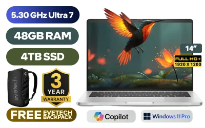 Dell Pro 14 Plus Intel® Core™ Ultra 7-265U up to 5.30GHz, 12MB Cache Processor, 12x Cores, 14x Threads / 48GB DDR5 RAM / 4TB Ultra-Fast NVME SSD / 14" FHD+ (1920x1200) Anti-glare, IPS-Level Display / Integrated Intel® Graphics / <span style="color:blue; font-size: 17px;">Windows 11 Professional (64bit)</span> / Intel WiFi 6E AX211 Wireless LAN / Bluetooth 5.3 / 1080p FHD IR Camera / 2x USB Type-A / 2x USB Type-C (Supports Thunderbolt 4 / DisplayPort 2.1) / 1x HDMI / 1x SIM Card Slot / 1x Microphone and Headphone Combo Jack / Fingerpint Reader / Kensington Lock / White backlight Keyboard / 4 Stereo speakers with Cirrus Logic codec / Dell Pro 14 Plus Core Ultra 7 Laptop DealDell Pro 14 Plus Intel® Core™ Ultra 7-265U up to 5.30GHz, 12MB Cache Processor, 12x Cores, 14x Threads / 48GB DDR5 RAM / 4TB Ultra-Fast NVME SSD / 14" FHD+ (1920x1200) Anti-glare, IPS-Level Display / Integrated Intel® Graphics / Windows 11 Professional (64bit) / Intel WiFi 6E AX211 Wireless LAN / Bluetooth 5.3 / 1080p FHD IR Camera / 2x USB Type-A / 2x USB Type-C (Supports Thunderbolt 4 / DisplayPort 2.1) / 1x HDMI / 1x SIM Card Slot / 1x Microphone and Headphone Combo Jack / Fingerpint Reader / Kensington Lock / White backlight Keyboard / 4 Stereo speakers with Cirrus Logic codec / Dell Pro 14 Plus Core Ultra 7 Laptop Deal [BTO111_PB14250/48GB/4TB] / [+] GET FREE EVETECH NEO Premium Gaming Backpack / 3 YEARS WARRANTY + FREE DELIVERY !