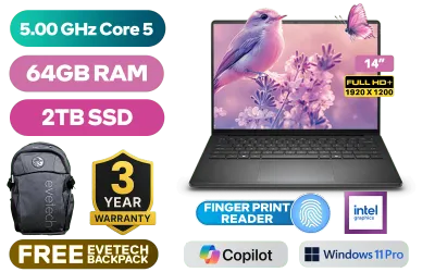 Dell Pro 14 Essential PV14250 Intel Core 5-120U up to 5.00GHz Processor, 12MB Cache, 10x Cores, 12x Threads / 64GB DDR5 RAM / 2TB Ultra-Fast NVME SSD / 14" FHD+ (1920x1200) IPS-Level Anti-glare Display / Integrated Intel Graphics / <span style="font-size: 20px; color: #00BFFF; font-weight: bold;">Windows 11 Professional (64bit)</span> / Realtek RTL8852BE Wi-Fi 6 Wireless LAN / Bluetooth 5.2 / 720p HD Web Camera / 2x USB Type-A / 1x USB Type-C (Power Delivery and DisplayPort) / 1x HDMI / 1x Microphone and Headphone Combo Jack / 1x SD Card Reader / Fingerprint Reader / Kensington Lock / White Backlit Keyboard / 2W x 2 Stereo Speaker with Dolby Atmos Core Audio / Dell Pro 14 Essential PV14250 Intel Core 5 Laptop DealDell Pro 14 Essential PV14250 Intel Core 5-120U up to 5.00GHz Processor, 12MB Cache, 10x Cores, 12x Threads / 64GB DDR5 RAM / 2TB Ultra-Fast NVME SSD / 14" FHD+ (1920x1200) IPS-Level Anti-glare Display / Integrated Intel Graphics / Windows 11 Professional (64bit) / Realtek RTL8852BE Wi-Fi 6 Wireless LAN / Bluetooth 5.2 / 720p HD Web Camera / 2x USB Type-A / 1x USB Type-C (Power Delivery and DisplayPort) / 1x HDMI / 1x Microphone and Headphone Combo Jack / 1x SD Card Reader / Fingerprint Reader / Kensington Lock / White Backlit Keyboard / 2W x 2 Stereo Speaker with Dolby Atmos Core Audio / Dell Pro 14 Essential PV14250 Intel Core 5 Laptop Deal [NBDEPV14250C516512PE/64GB/2TB] / [+] GET FREE EVETECH FLUX Premium Gaming Backpack / 3 YEARS WARRANTY + FREE DELIVERY !