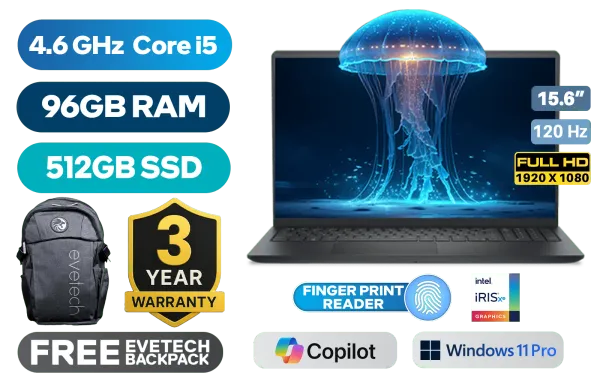 Dell Pro 15 Essential PV15250 5250-4322 13th Intel Core i5-1334U up to 4.6GHz Processor, 12MB Cache, 10x Cores, 12x Threads / 96GB DDR5 RAM / 512GB Ultra-Fast NVME SSD / 15.6" FHD (1920x1080) 120Hz Anti-Glare Display / Integrated Intel Iris Xe Graphics / <span style="font-size: 20px; color: #00BFFF; font-weight: bold;">Windows 11 Professional (64bit)</span> / Realtek WiFi 6 RTL 8852BW Wireless LAN / Bluetooth 5.2 / 720p HD Camera / 2x USB Type-A / 1x USB Type-C / 1x HDMI / 1x Microphone and Headphone Combo Jack / 1x SD Card Reader / Finger Print Reader / 2 Tuned Speakers / Dell Pro 15 Essential PV15250 Core i5 Laptop DealDell Pro 15 Essential PV15250 5250-4322 13th Intel Core i5-1334U up to 4.6GHz Processor, 12MB Cache, 10x Cores, 12x Threads / 96GB DDR5 RAM / 512GB Ultra-Fast NVME SSD / 15.6" FHD (1920x1080) 120Hz Anti-Glare Display / Integrated Intel Iris Xe Graphics / Windows 11 Professional (64bit) / Realtek WiFi 6 RTL 8852BW Wireless LAN / Bluetooth 5.2 / 720p HD Camera / 2x USB Type-A / 1x USB Type-C / 1x HDMI / 1x Microphone and Headphone Combo Jack / 1x SD Card Reader / Finger Print Reader / 2 Tuned Speakers / Dell Pro 15 Essential PV15250 Core i5 Laptop Deal [PV15250_RPLU_001_P/96GB] / 3 YEARS WARRANTY / [+] GET FREE EVETECH FLUX Premium Gaming Backpack+ FREE DELIVERY !