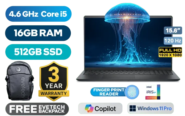Dell Pro 15 Essential PV15250 5250-4322 13th Intel Core i5-1334U up to 4.6GHz Processor, 12MB Cache, 10x Cores, 12x Threads / 16GB DDR5 RAM / 512GB Ultra-Fast NVME SSD / 15.6" FHD (1920x1080) 120Hz Anti-Glare Display / Integrated Intel Iris Xe Graphics / <span style="font-size: 20px; color: #00BFFF; font-weight: bold;">Windows 11 Professional (64bit)</span> / Realtek WiFi 6 RTL 8852BW Wireless LAN / Bluetooth 5.2 / 720p HD Camera / 2x USB Type-A / 1x USB Type-C / 1x HDMI / 1x Microphone and Headphone Combo Jack / 1x SD Card Reader / Finger Print Reader / 2 Tuned Speakers / Dell Pro 15 Essential PV15250 Core i5 Laptop DealDell Pro 15 Essential PV15250 5250-4322 13th Intel Core i5-1334U up to 4.6GHz Processor, 12MB Cache, 10x Cores, 12x Threads / 16GB DDR5 RAM / 512GB Ultra-Fast NVME SSD / 15.6" FHD (1920x1080) 120Hz Anti-Glare Display / Integrated Intel Iris Xe Graphics / Windows 11 Professional (64bit) / Realtek WiFi 6 RTL 8852BW Wireless LAN / Bluetooth 5.2 / 720p HD Camera / 2x USB Type-A / 1x USB Type-C / 1x HDMI / 1x Microphone and Headphone Combo Jack / 1x SD Card Reader / Finger Print Reader / 2 Tuned Speakers / Dell Pro 15 Essential PV15250 Core i5 Laptop Deal [PV15250_RPLU_001_P] / 3 YEARS WARRANTY / [+] GET FREE EVETECH FLUX Premium Gaming Backpack+ FREE DELIVERY !