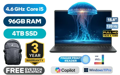Dell Pro 15 Essential PV15250 5250-4322 13th Intel Core i5-1334U up to 4.6GHz Processor, 12MB Cache, 10x Cores, 12x Threads / 96GB DDR5 RAM / 4TB Ultra-Fast NVME SSD / 15.6" FHD (1920x1080) 120Hz Anti-Glare Display / Integrated Intel Iris Xe Graphics / <span style="font-size: 20px; color: #00BFFF; font-weight: bold;">Windows 11 Professional (64bit)</span> / Realtek WiFi 6 RTL 8852BW Wireless LAN / Bluetooth 5.2 / 720p HD Camera / 2x USB Type-A / 1x USB Type-C / 1x HDMI / 1x Microphone and Headphone Combo Jack / 1x SD Card Reader / Finger Print Reader / 2 Tuned Speakers / Dell Pro 15 Essential PV15250 Core i5 Laptop DealDell Pro 15 Essential PV15250 5250-4322 13th Intel Core i5-1334U up to 4.6GHz Processor, 12MB Cache, 10x Cores, 12x Threads / 96GB DDR5 RAM / 4TB Ultra-Fast NVME SSD / 15.6" FHD (1920x1080) 120Hz Anti-Glare Display / Integrated Intel Iris Xe Graphics / Windows 11 Professional (64bit) / Realtek WiFi 6 RTL 8852BW Wireless LAN / Bluetooth 5.2 / 720p HD Camera / 2x USB Type-A / 1x USB Type-C / 1x HDMI / 1x Microphone and Headphone Combo Jack / 1x SD Card Reader / Finger Print Reader / 2 Tuned Speakers / Dell Pro 15 Essential PV15250 Core i5 Laptop Deal [PV15250_RPLU_001_P/96GB/4TB] / 3 YEARS WARRANTY / [+] GET FREE EVETECH FLUX Premium Gaming Backpack+ FREE DELIVERY !