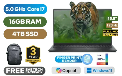 Dell Pro 15 Essential PV15250 13th Intel Core i7-1355U up to 5.0GHz Processor, 12MB Cache, 10x Cores, 12x Threads / 16GB DDR5 RAM / 4TB Ultra-Fast NVME SSD / 15.6" FHD (1920x1080) 120Hz IPS-Level Display / Integrated Intel Iris Xe Graphics / Windows 11 Home (64bit) / Realtek RTL8852BE Wi-Fi 6 Wireless LAN / Bluetooth 5.3 / 720p HD Web Camera / Finger Print Reader / 2x USB Type-A / 1x USB Type-C (Supports DisplayPort / Power Delivery) / 1x HDMI / 1x Microphone and Headphone Combo Jack / 1x SD Card Reader / 2 Tuned Speakers / Dell Pro 15 Essential PV15250 Intel Core i7 Laptop DealDell Pro 15 Essential PV15250 13th Intel Core i7-1355U up to 5.0GHz Processor, 12MB Cache, 10x Cores, 12x Threads / 16GB DDR5 RAM / 4TB Ultra-Fast NVME SSD / 15.6" FHD (1920x1080) 120Hz IPS-Level Display / Integrated Intel Iris Xe Graphics / Windows 11 Home (64bit) / Realtek RTL8852BE Wi-Fi 6 Wireless LAN / Bluetooth 5.3 / 720p HD Web Camera / Finger Print Reader / 2x USB Type-A / 1x USB Type-C (Supports DisplayPort / Power Delivery) / 1x HDMI / 1x Microphone and Headphone Combo Jack / 1x SD Card Reader / 2 Tuned Speakers / Dell Pro 15 Essential PV15250 Intel Core i7 Laptop Deal [PV15250_RPLU_007_P_VODA/4TB] / 3 YEARS WARRANTY / [+] GET FREE EVETECH FLUX Premium Gaming Backpack+ FREE DELIVERY !