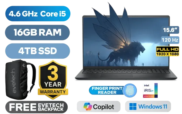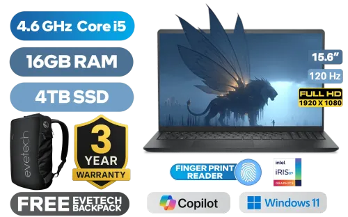 Dell Pro 15 Essential PV15250 13th Generation Intel Core i5-1334U up to 4.6GHz Processor, 12MB Cache, 10x Cores, 12x Threads / 16GB DDR5 RAM / 4TB Ultra-Fast NVME SSD / 15.6" FHD (1920x1080) 120Hz Anti-glare IPS-Level Display / Integrated Intel Iris Xe Graphics / Windows 11 Home (64bit) / Realtek RTL8852BE Wi-Fi 6 Wireless LAN / Bluetooth 5.2 / 720p HD Camera / 2x USB Type-A / 1x USB Type-C / 1x HDMI / 1x Microphone and Headphone Combo Jack / 1x SD Card Reader / 2 Tuned Speakers / Fingerprint Reader / Dell Pro 15 Essential PV15250 Intel Core i5 Laptop DealDell Pro 15 Essential PV15250 13th Generation Intel Core i5-1334U up to 4.6GHz Processor, 12MB Cache, 10x Cores, 12x Threads / 16GB DDR5 RAM / 4TB Ultra-Fast NVME SSD / 15.6" FHD (1920x1080) 120Hz Anti-glare IPS-Level Display / Integrated Intel Iris Xe Graphics / Windows 11 Home (64bit) / Realtek RTL8852BE Wi-Fi 6 Wireless LAN / Bluetooth 5.2 / 720p HD Camera / 2x USB Type-A / 1x USB Type-C / 1x HDMI / 1x Microphone and Headphone Combo Jack / 1x SD Card Reader / 2 Tuned Speakers / Fingerprint Reader / Dell Pro 15 Essential PV15250 Intel Core i5 Laptop Deal [PV15250_RPLU_005_P_VODA/4TB] / 3 YEARS WARRANTY / [+] GET FREE EVETECH NEO Premium Gaming Backpack+ FREE DELIVERY !