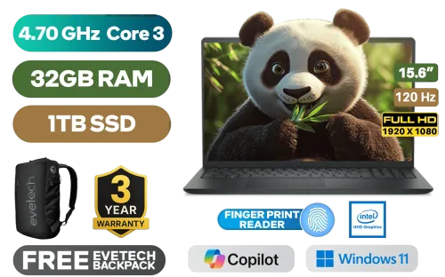 Dell Pro 15 Essential PV15250 Intel Core 3-100U up to 4.70GHz Processor, 10MB Cache, 6x Cores, 8x Threads / 32GB DDR5 RAM / 1TB Ultra-Fast NVME SSD / 15.6" FHD (1920x1080) 120Hz Anti-glare IPS-Level Display / Integrated Intel UHD Graphics / Windows 11 Home (64bit) / Realtek RTL8852BE Wi-Fi 6 Wireless LAN / Bluetooth 5.2 / 720p HD Camera / 2x USB Type-A / 1x USB Type-C / 1x HDMI / 1x SD Card Reader / 1x Microphone and Headphone Combo Jack / 2 Tuned Speakers / Dell Pro 15 PV15250 Essential Intel Core 3 Laptop DealDell Pro 15 Essential PV15250 Intel Core 3-100U up to 4.70GHz Processor, 10MB Cache, 6x Cores, 8x Threads / 32GB DDR5 RAM / 1TB Ultra-Fast NVME SSD / 15.6" FHD (1920x1080) 120Hz Anti-glare IPS-Level Display / Integrated Intel UHD Graphics / Windows 11 Home (64bit) / Realtek RTL8852BE Wi-Fi 6 Wireless LAN / Bluetooth 5.2 / 720p HD Camera / 2x USB Type-A / 1x USB Type-C / 1x HDMI / 1x SD Card Reader / 1x Microphone and Headphone Combo Jack / 2 Tuned Speakers / Dell Pro 15 PV15250 Essential Intel Core 3 Laptop Deal [PV15250_RPLU_004_P_VODA/32GB/1TB] / 3 YEARS WARRANTY / [+] GET FREE EVETECH NEO Premium Gaming Backpack+ FREE DELIVERY !